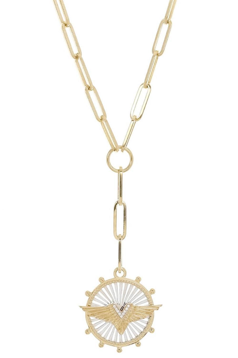 With wings we fly. 20mm medium Passion medallion on an 20” classic FOB chain plus a 1" extension from Foundrae. The links on the necklace are 2.5 links per inch.