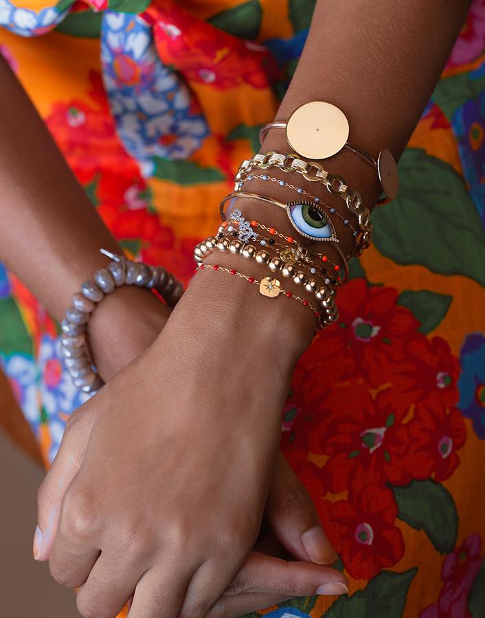 The classic Gigi bracelet in baby blye is handmade in the South of France by Alain Clozeau to embody all the spontaneity and hope that life has to offer. Can be worn layered or as a single strand.