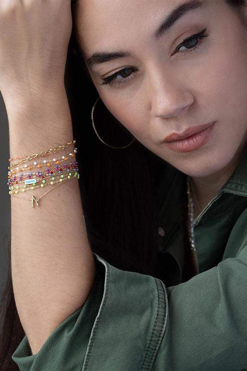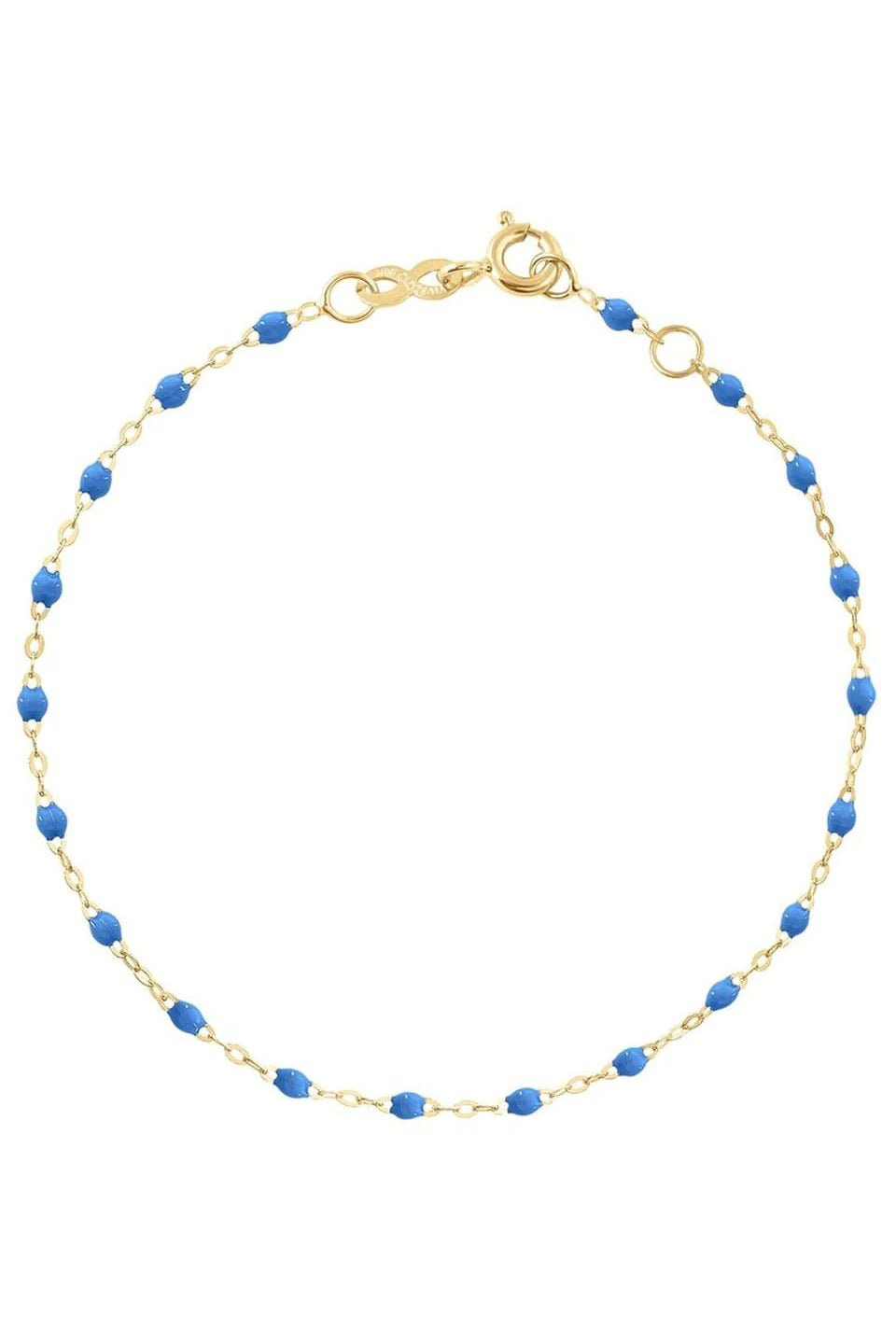 This classic Gigi bracelet in blue is handmade in the South of France to embody all the spontaneity and hope that life has to offer. Can be worn layered or as a single strand.