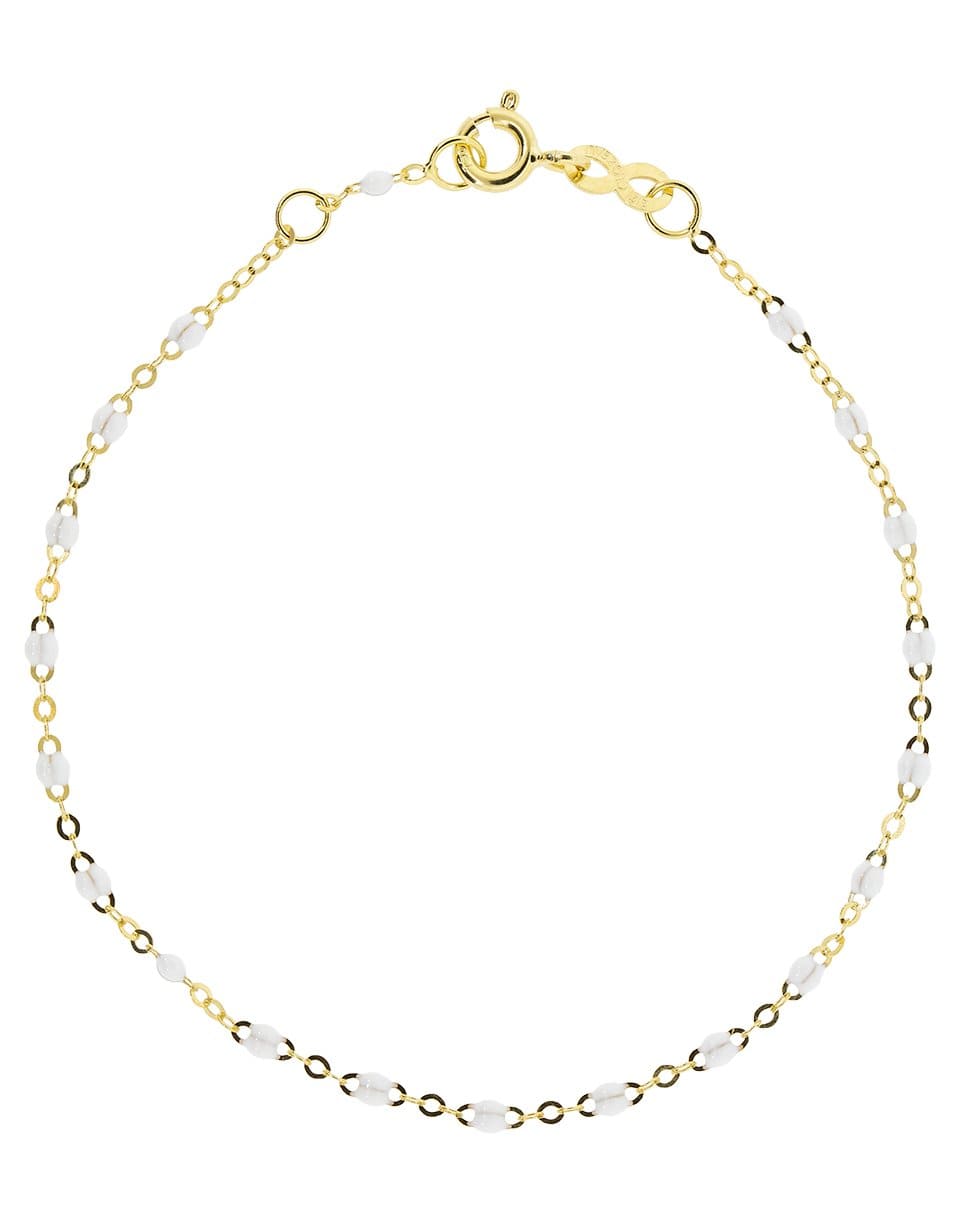 The classic Gigi bracelet in white is handmade in the South of France by Alain Clozeau to embody all the spontaneity and hope that life has to offer. Can be worn layered or as a single strand.