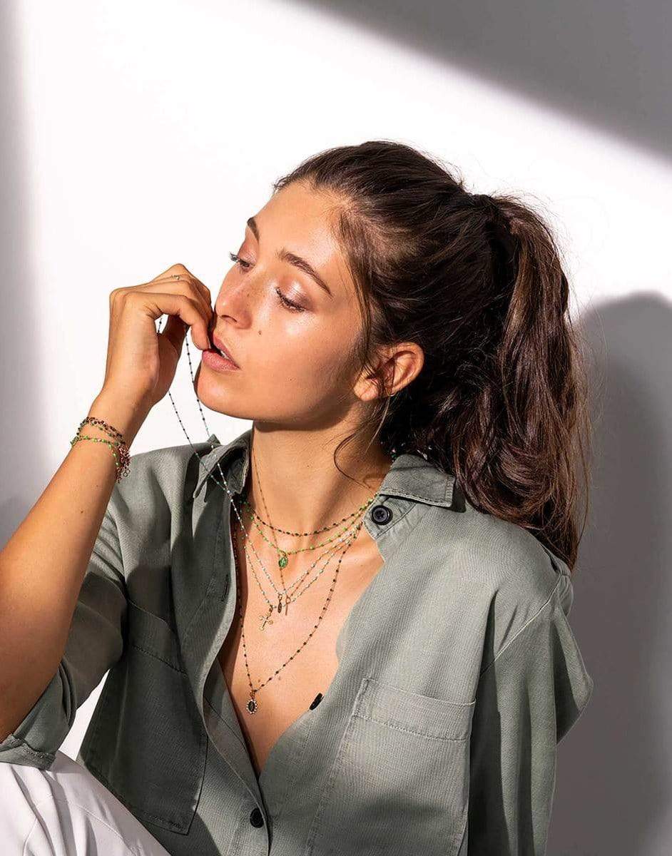 The Classic Gigi sautoir by gigi CLOZEAU features 18 carat Rose Gold, and bright Emerald jewels for an effortlessly stylish appearance. The Classic Gigi sautoir by gigi CLOZEAU features 18 carat Rose Gold, and bright Emerald jewels for an effortlessly stylish appearance.