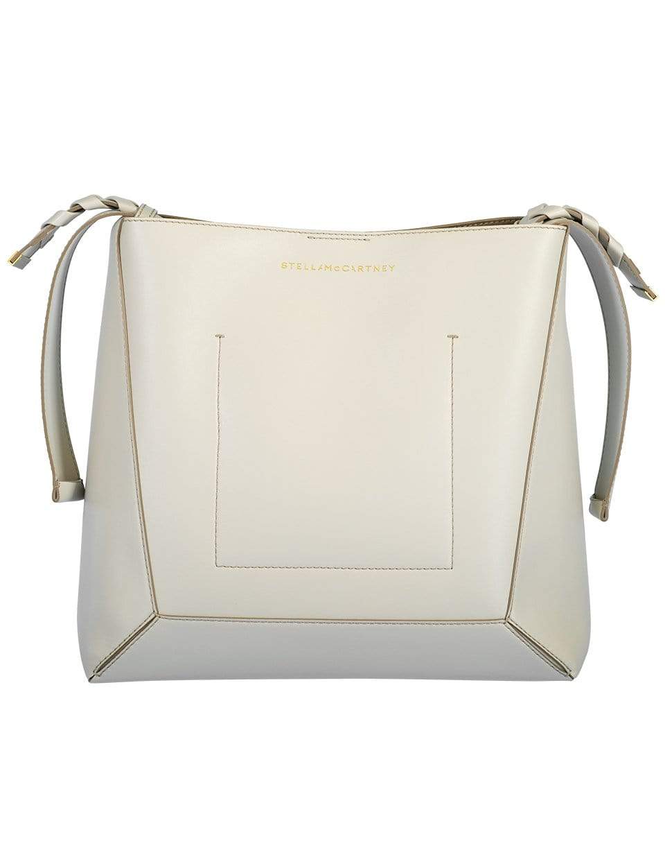 Stella McCartney soft faux-leather hobo bag in clay. Adjustable, braided shoulder strap with open top with magnetic snap closure. Interior, slip pocket.