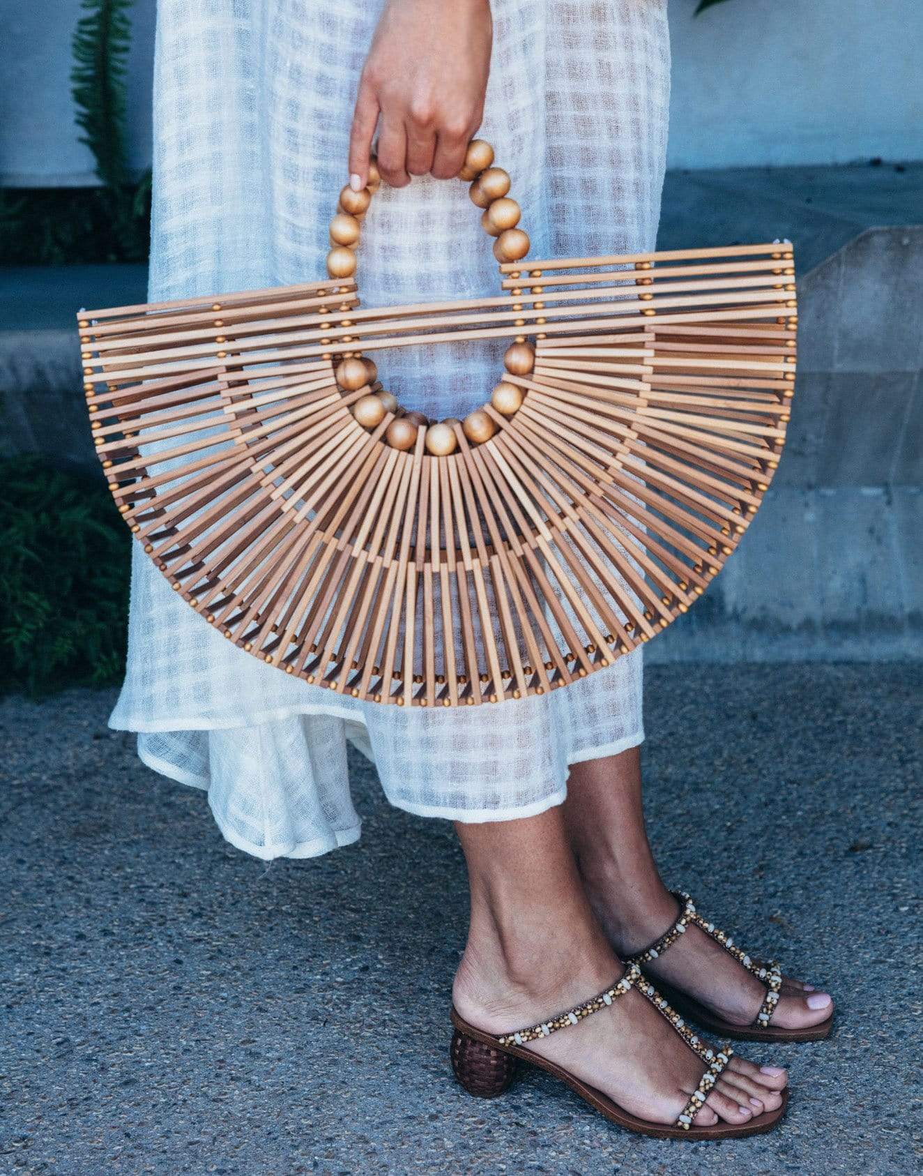 Cult Gaia handwoven Clio Heel with a square toe and carved spherical heel.