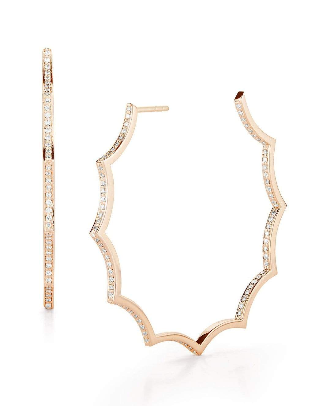 Walters Faith Clive 18K Gold and Diamond Scalloped Hoop Earrings.