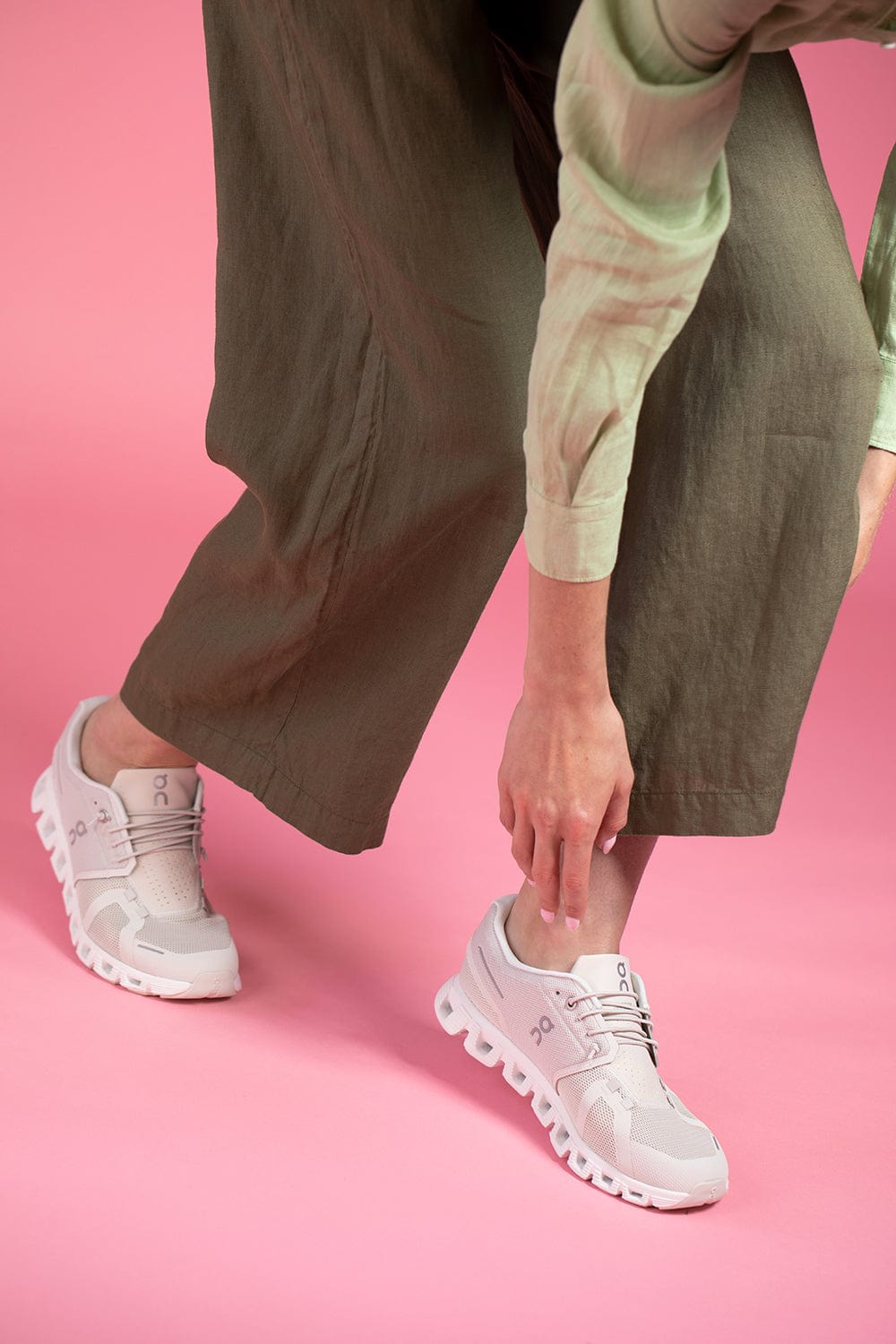 On Running cloud 5 running shoe in pearl white.