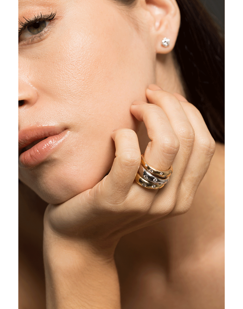From the cobblestone collection, this diamond ring by Kwiat features five scattered white diamonds on polished 18k rose gold.