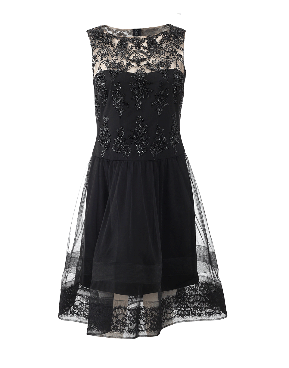 Jewel, Illusion Neckline With Glass Beading And Sequin Embroidery Top And Lace, Reinforced Hem