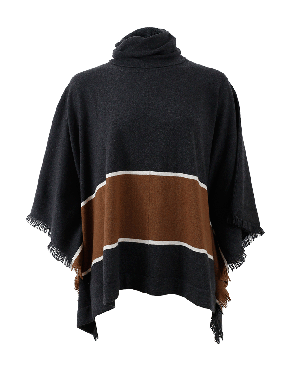 Turtle Neckline With Poncho Sleeves And Frayed Hem