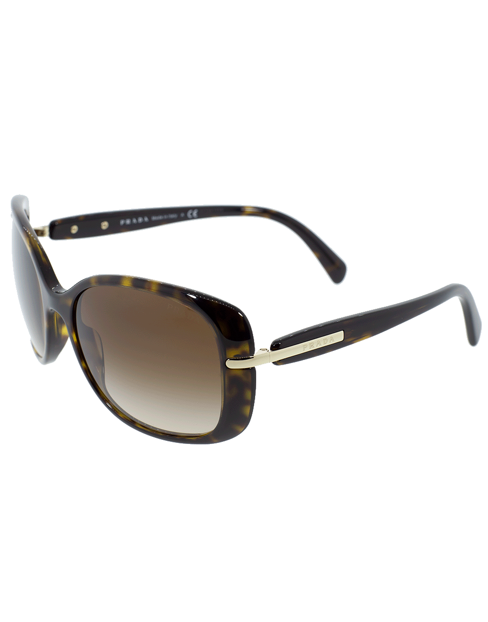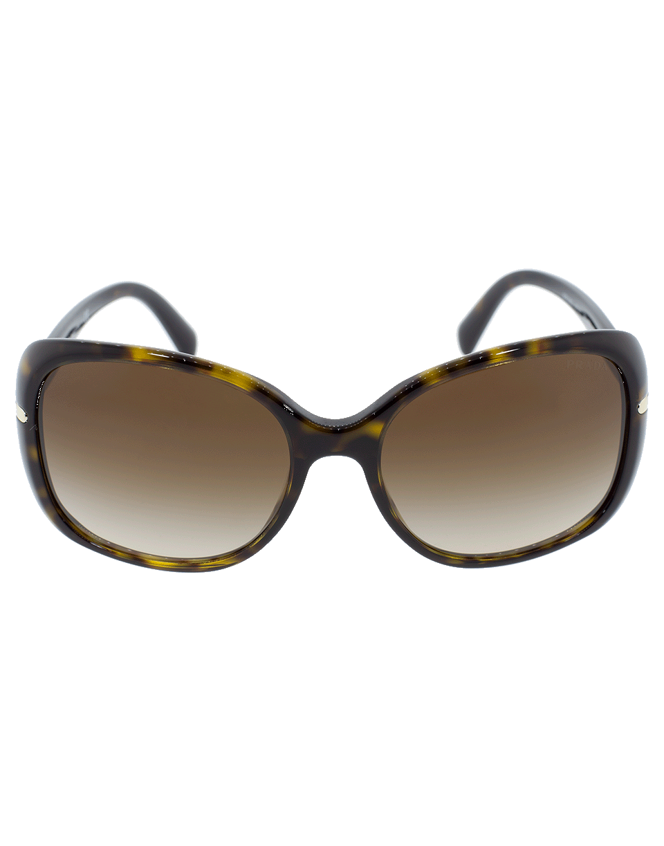 These classic sunglasses from Prada feature a square silhouette with a tortoise shell acetate frame and brown gradient lenses.
