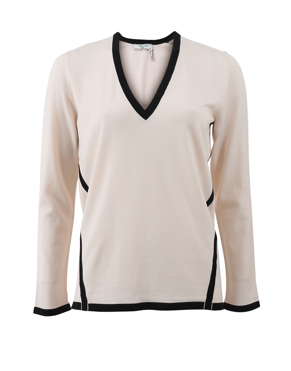 V Neckline With Long Sleeves And Contrast Seam Detail