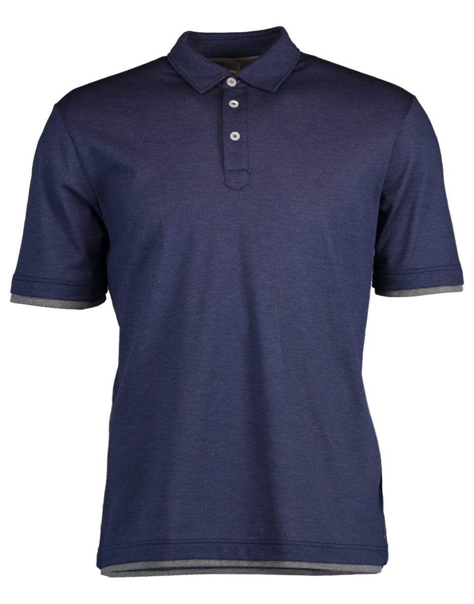 Eleventy polo with contrast tipping, short sleeves, spread collar, three front button closures, and a fitted silhouette.