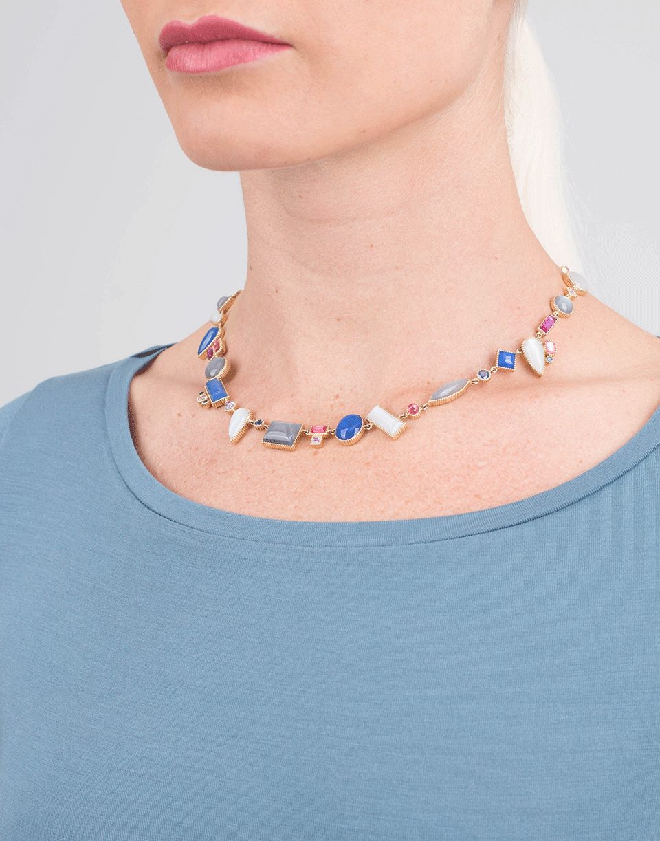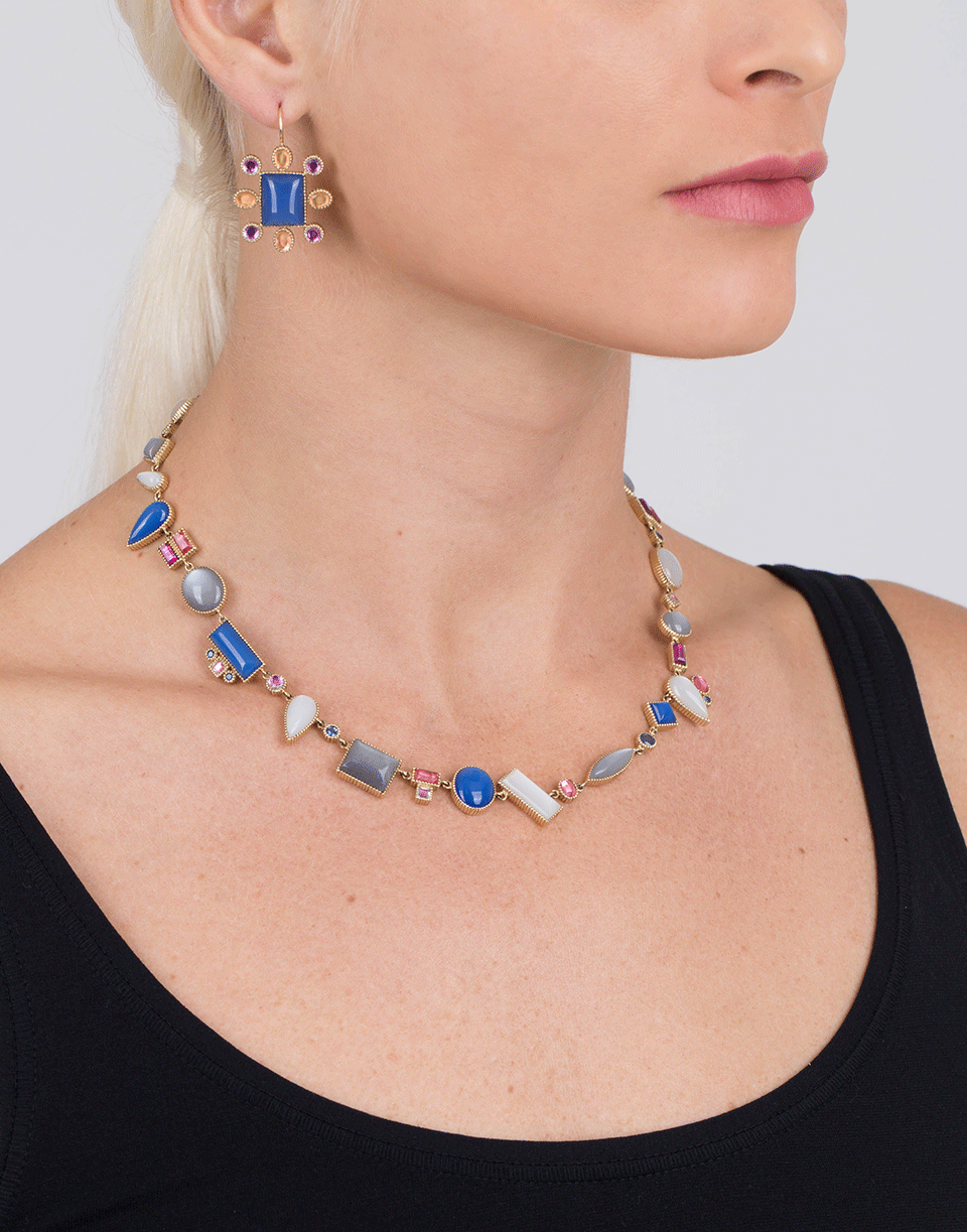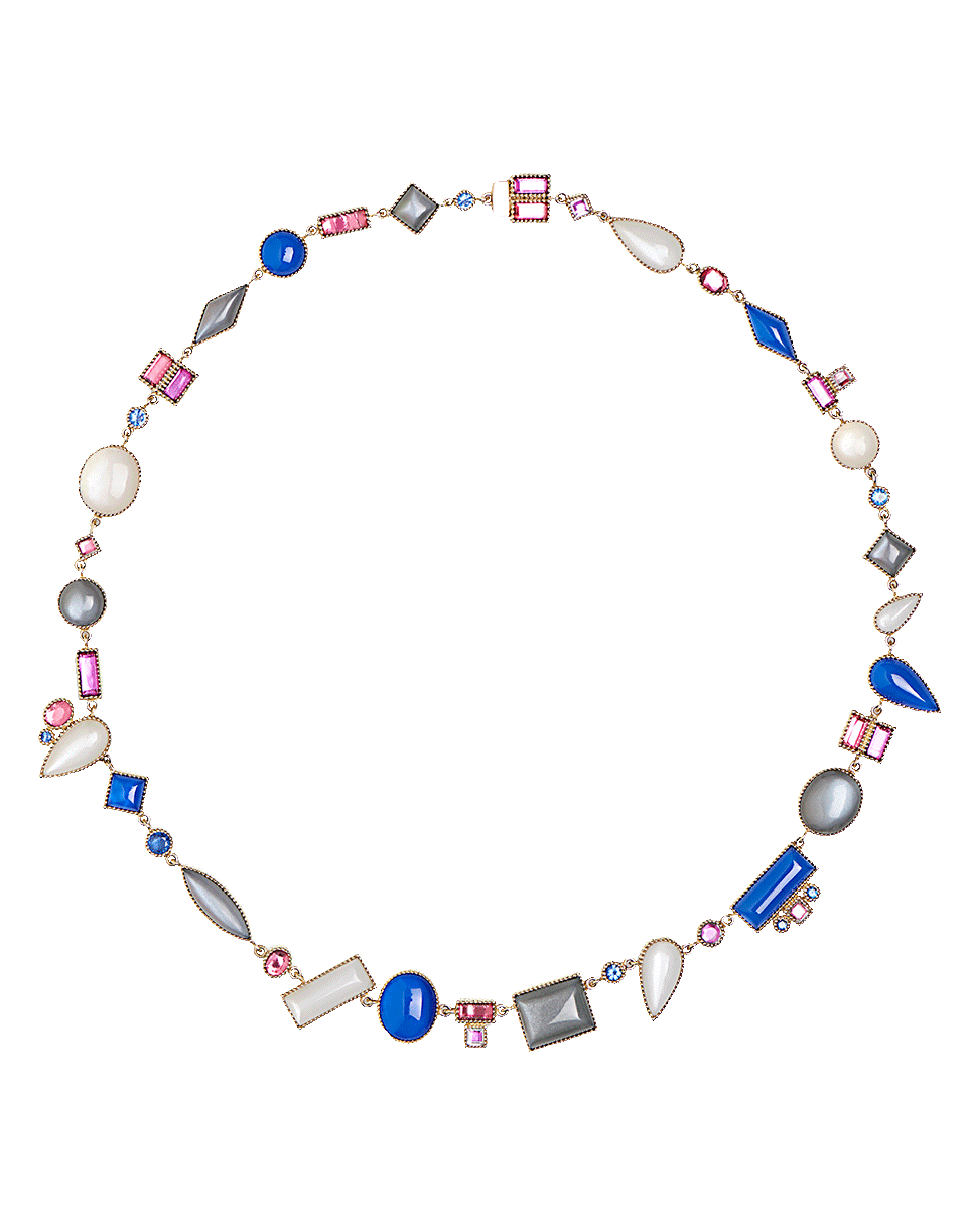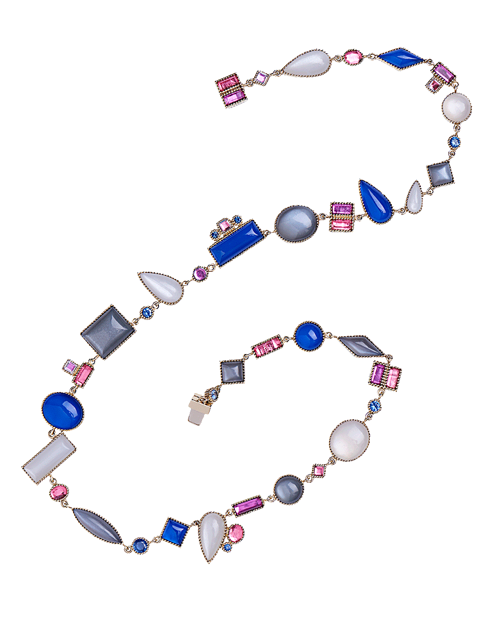Multi Colored Moonstone And Sapphires, Blue Chalcedony, White Quartz, Peach And Magenta Foils