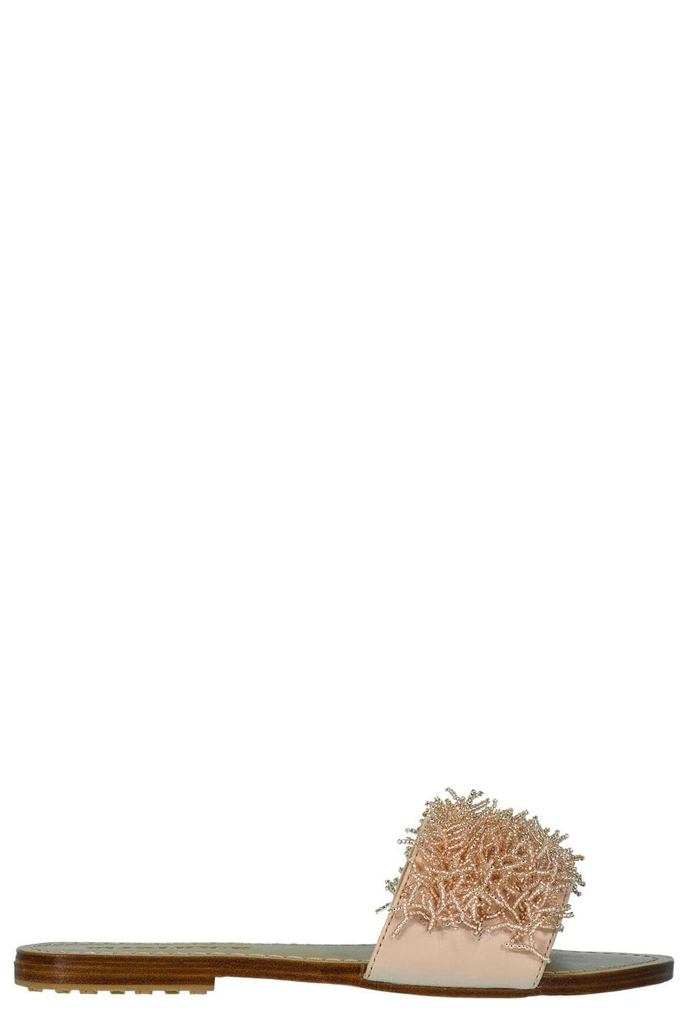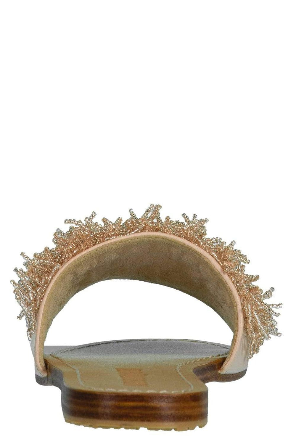 Mystique pale pink Coral Bay leather slide with embroidered beads at uppers.