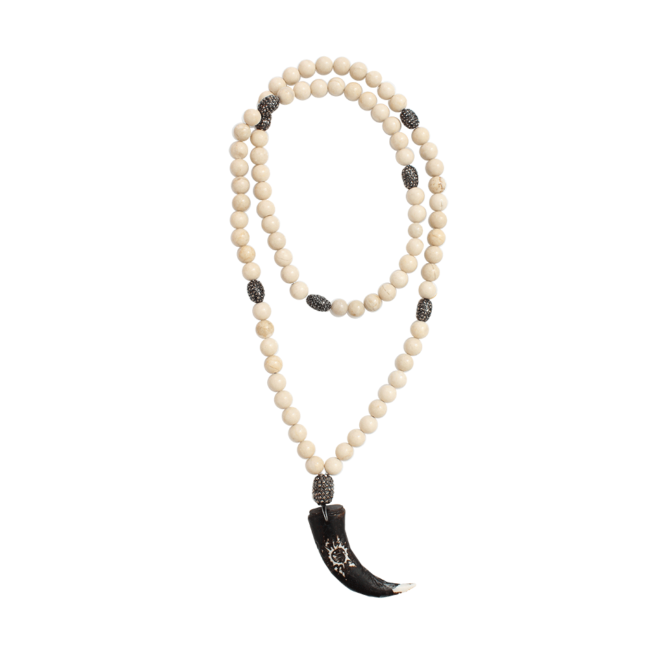 Natural Beads With Grey Pave Beads And Carved Black/White Horn