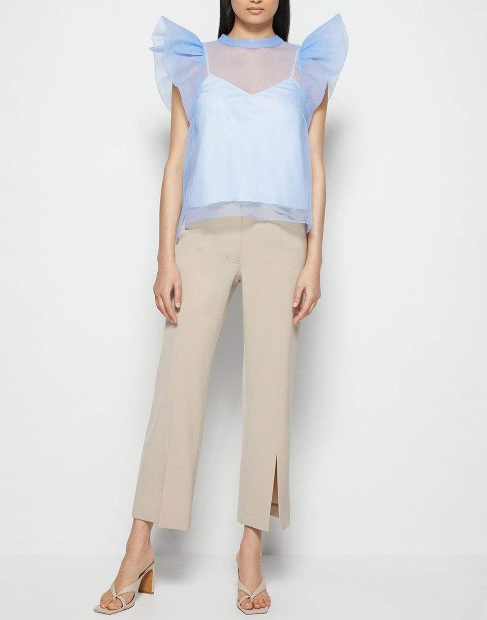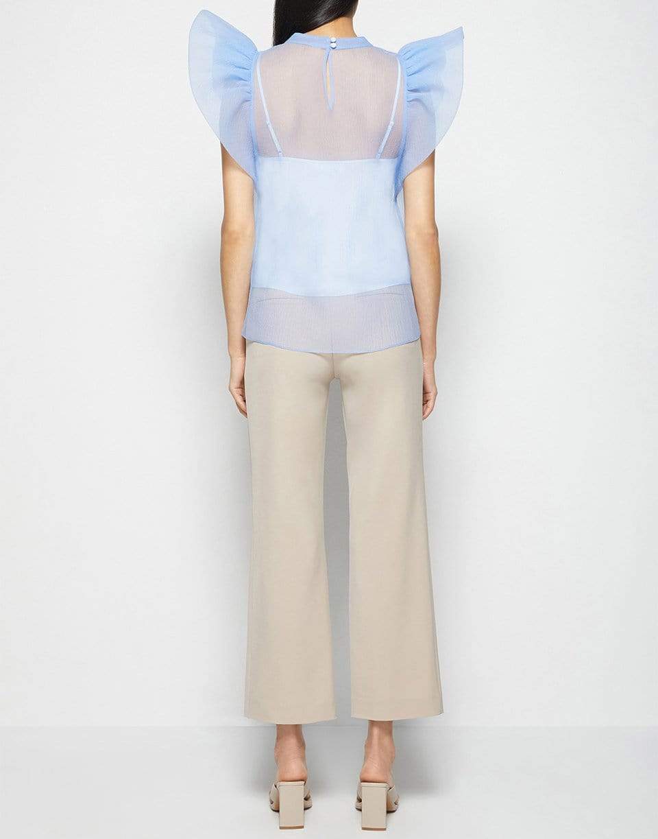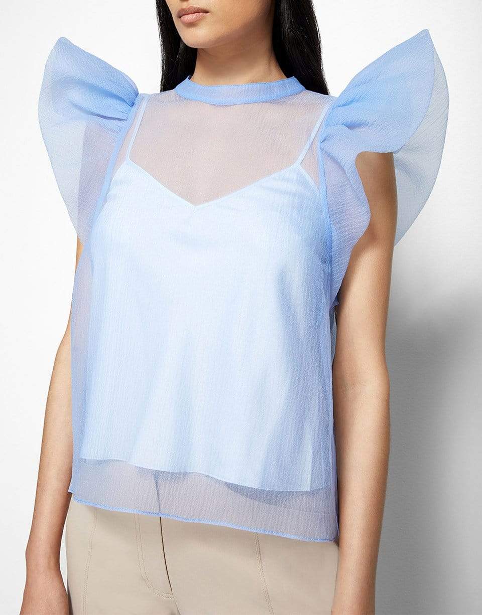 Jonathan Simkhai corina organza ruffle sleeve top in periwinkle.