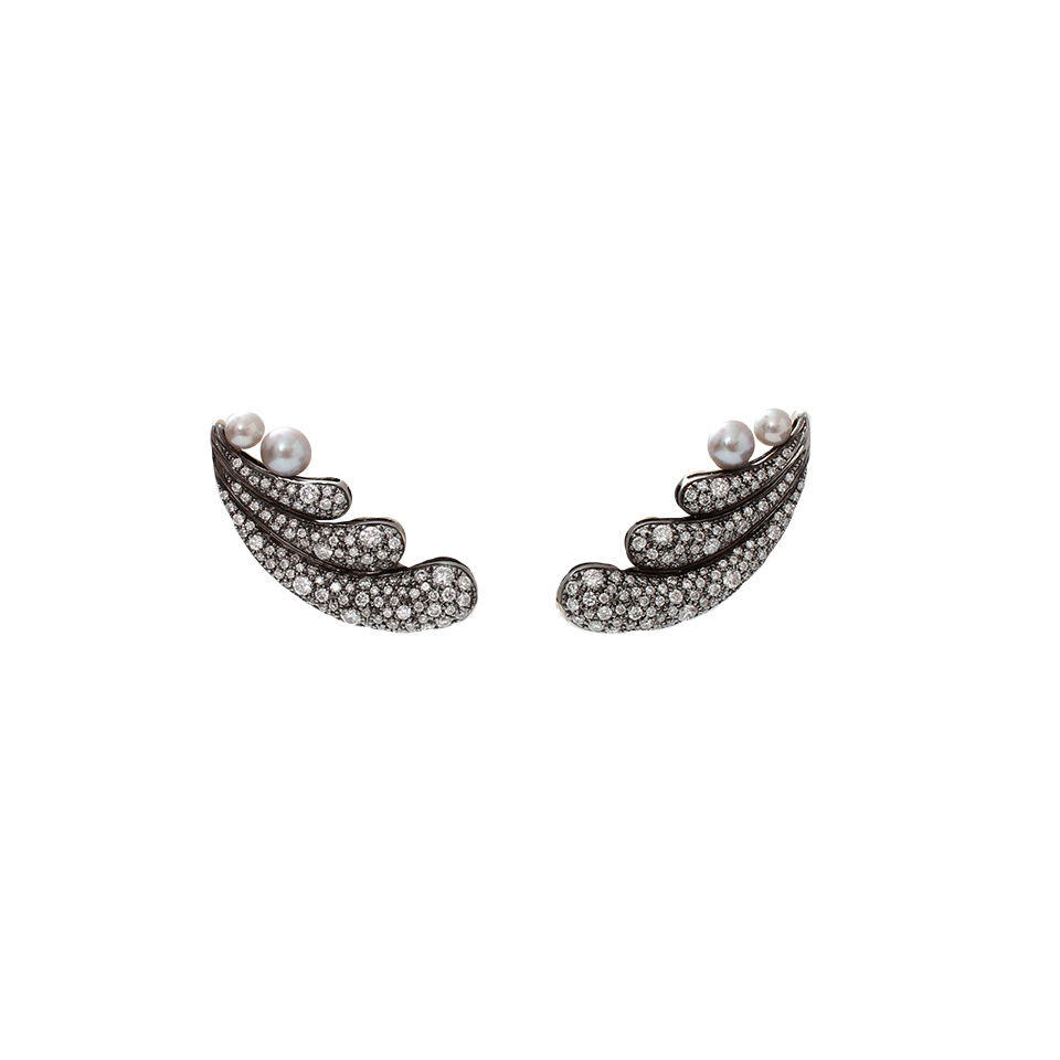 Cosmos Grey Pearl Earrings With Diamonds From Nicholas Liu