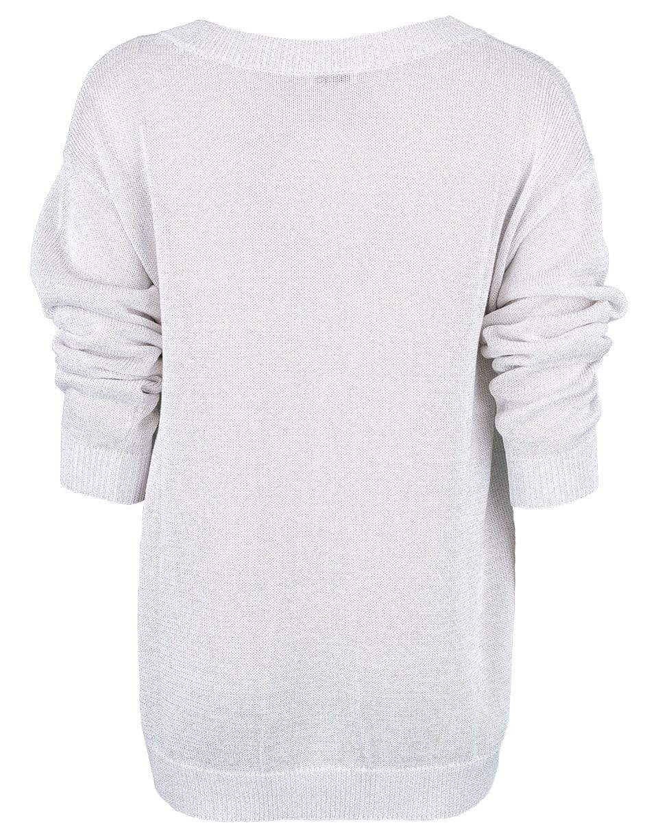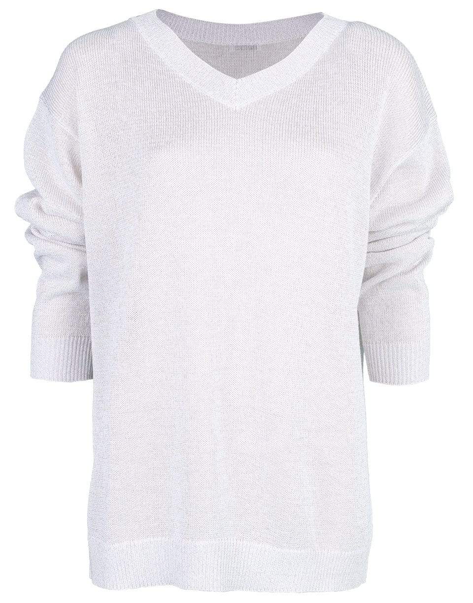 Brunello Cucinelli long sleeve cotton lurex knit with a regular fit, V-neck, ribbed trim, and a slip over design.