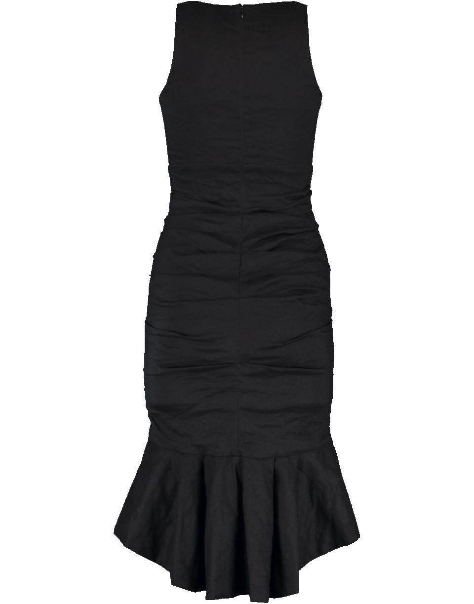 Ruffled Hem With Slim Fitting Silhouette And Calf Length Cut