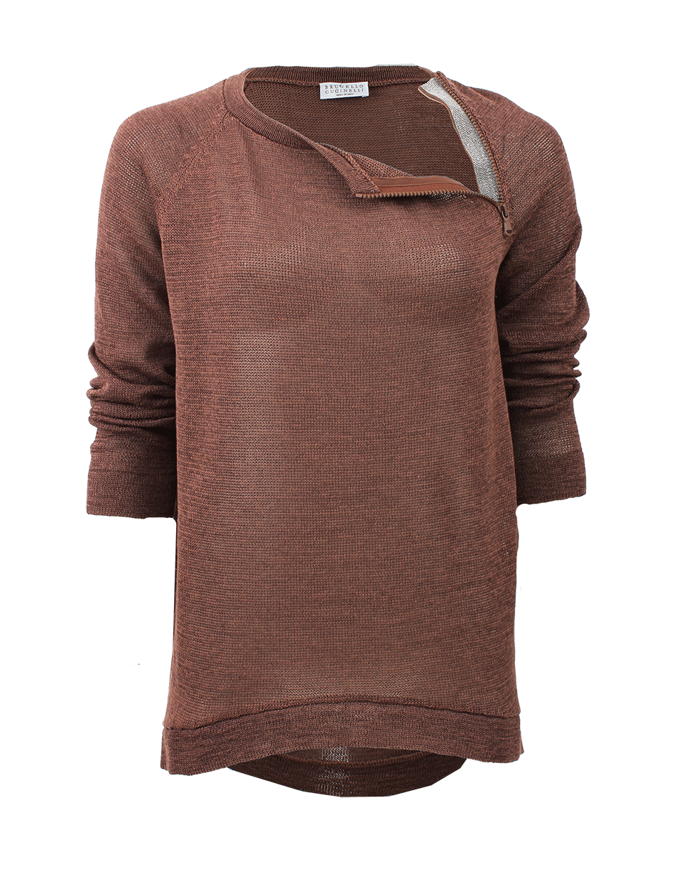 Cotton Pullover With Shoulder Zip From Brunello Cucinelli