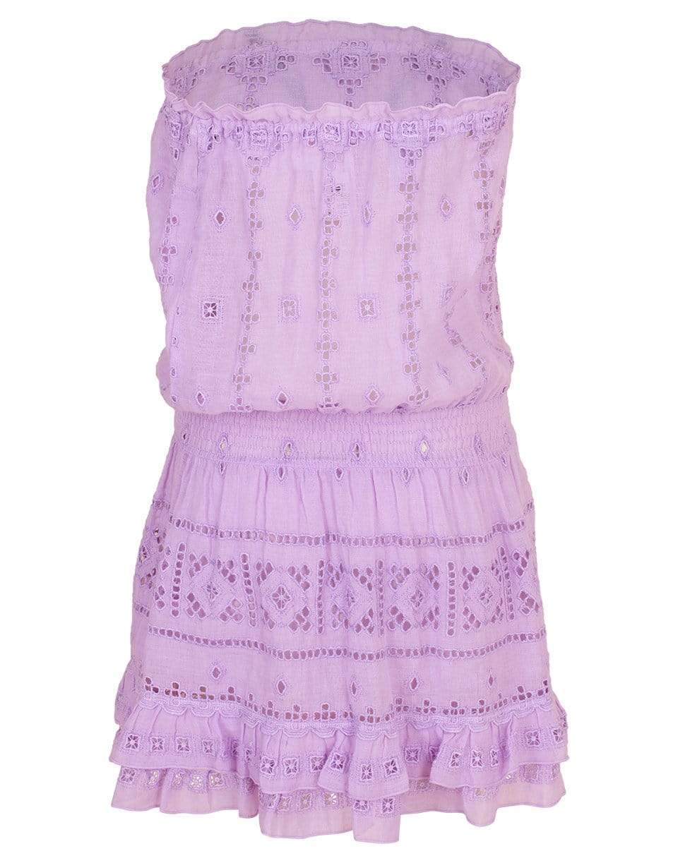Tempation Positano Croco strapless mini dress with a regular fit, crochet detail, and subtle tiered pleats at hem.