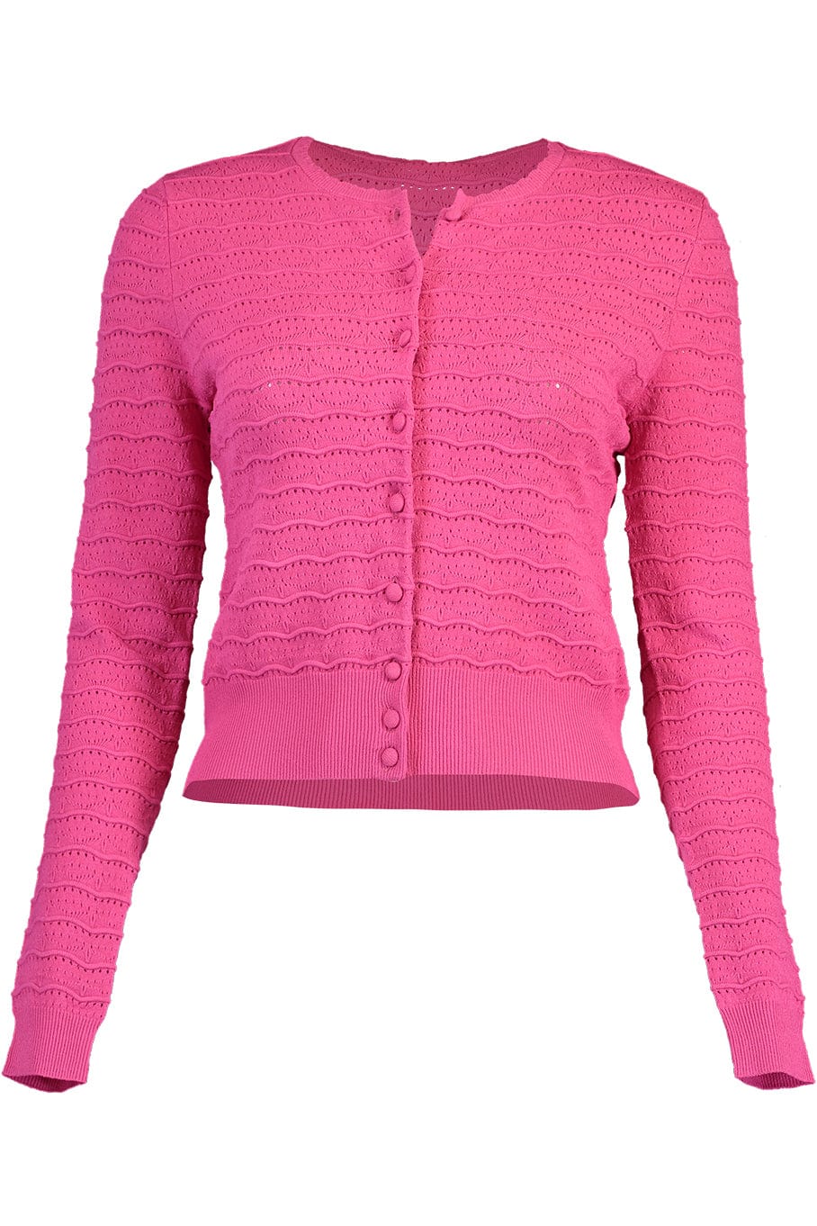 Adam Lippes long sleeve cropped cardigan in fuschia.