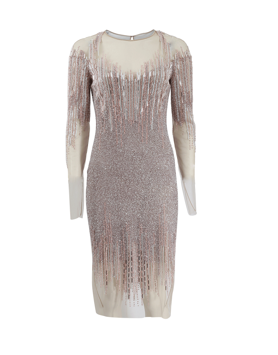 Sheer Crew Neckline With Back Zip And Keyhole Closures, Sheer Long Sleeves