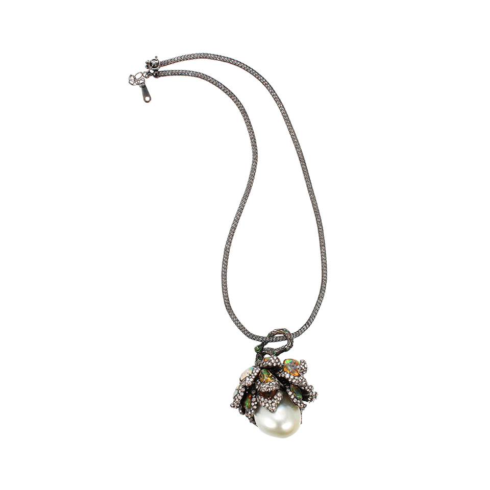 Slip your favorite pendants onto this crystal wrapped black gold necklace by Arunashi and compliment their every side of shimmer and sparkle. Spring Ring Closure 14” Length, 0.19” Width Available in 18K Black Gold
