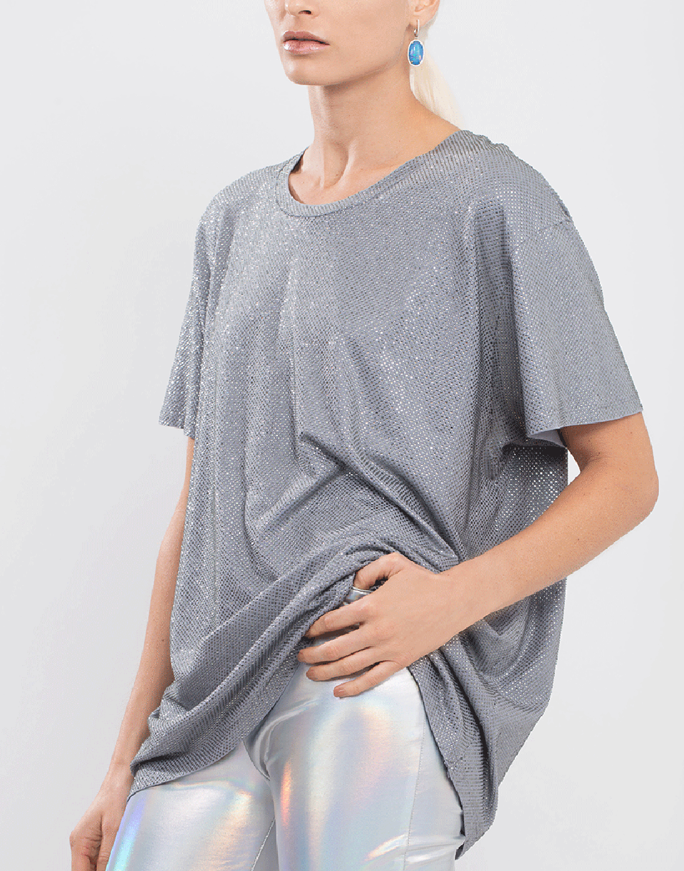 Grey crystal stud t-shirt from Alexandre Vauthier featuring a relaxed fit with short sleeves, round neckline, and a pullover design.