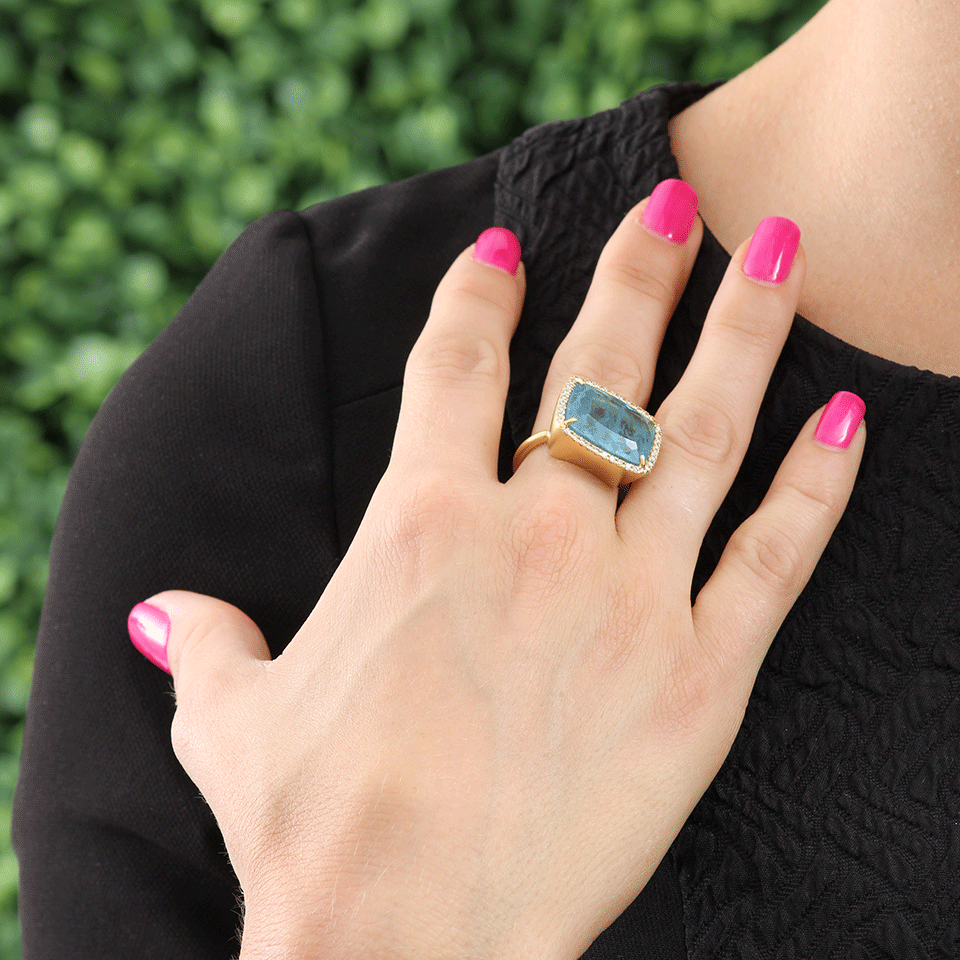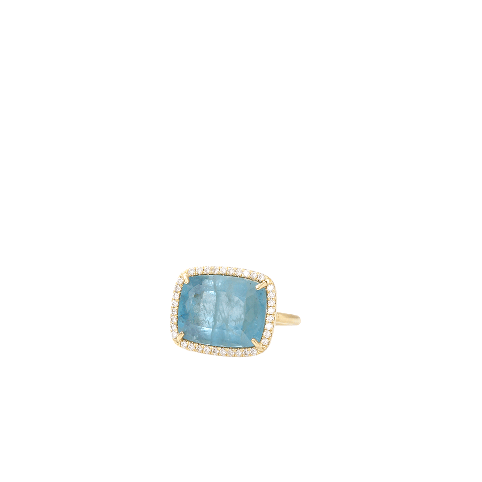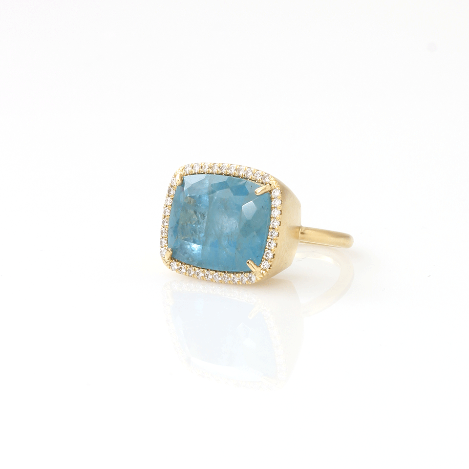 Cushion Cut Fine Aquamarine Ring With Diamond Pave From Irene Neuwirth