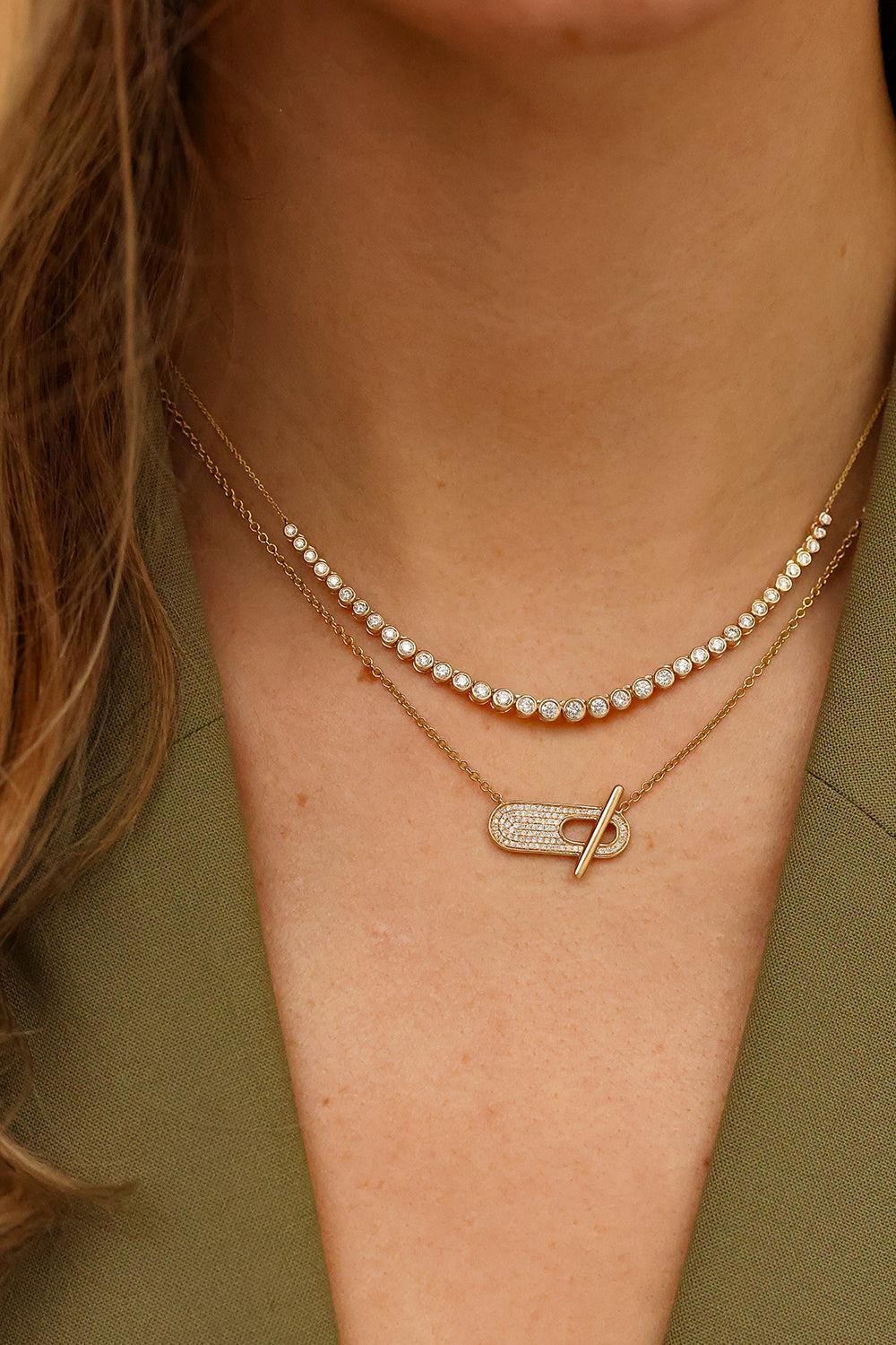 Dana Rebecca Designs lulu jack graduating bezel tennis necklace in yellow gold.