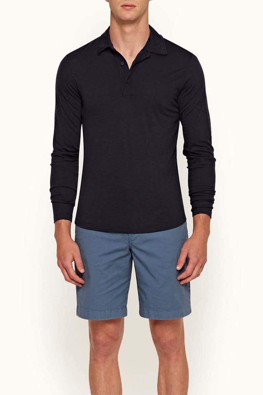 Orlebar Brown dane iii cotton twill short in blue smoke.