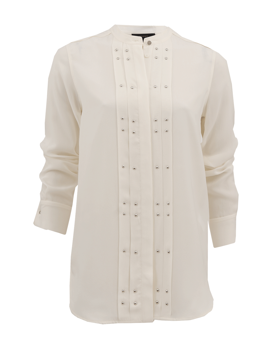 Sewn-In Pleats With Silver Stud Detailing And Snap Band Collar