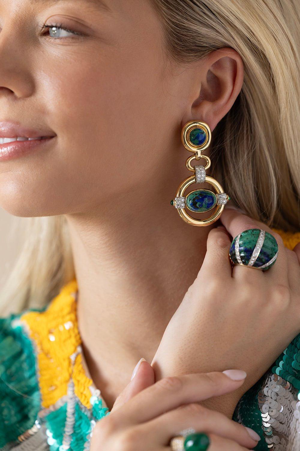 Azurmalachite, brilliant-cut diamonds