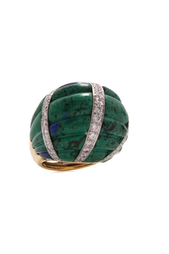 David Webb fluted azurmalachite dome ring in yellow gold.