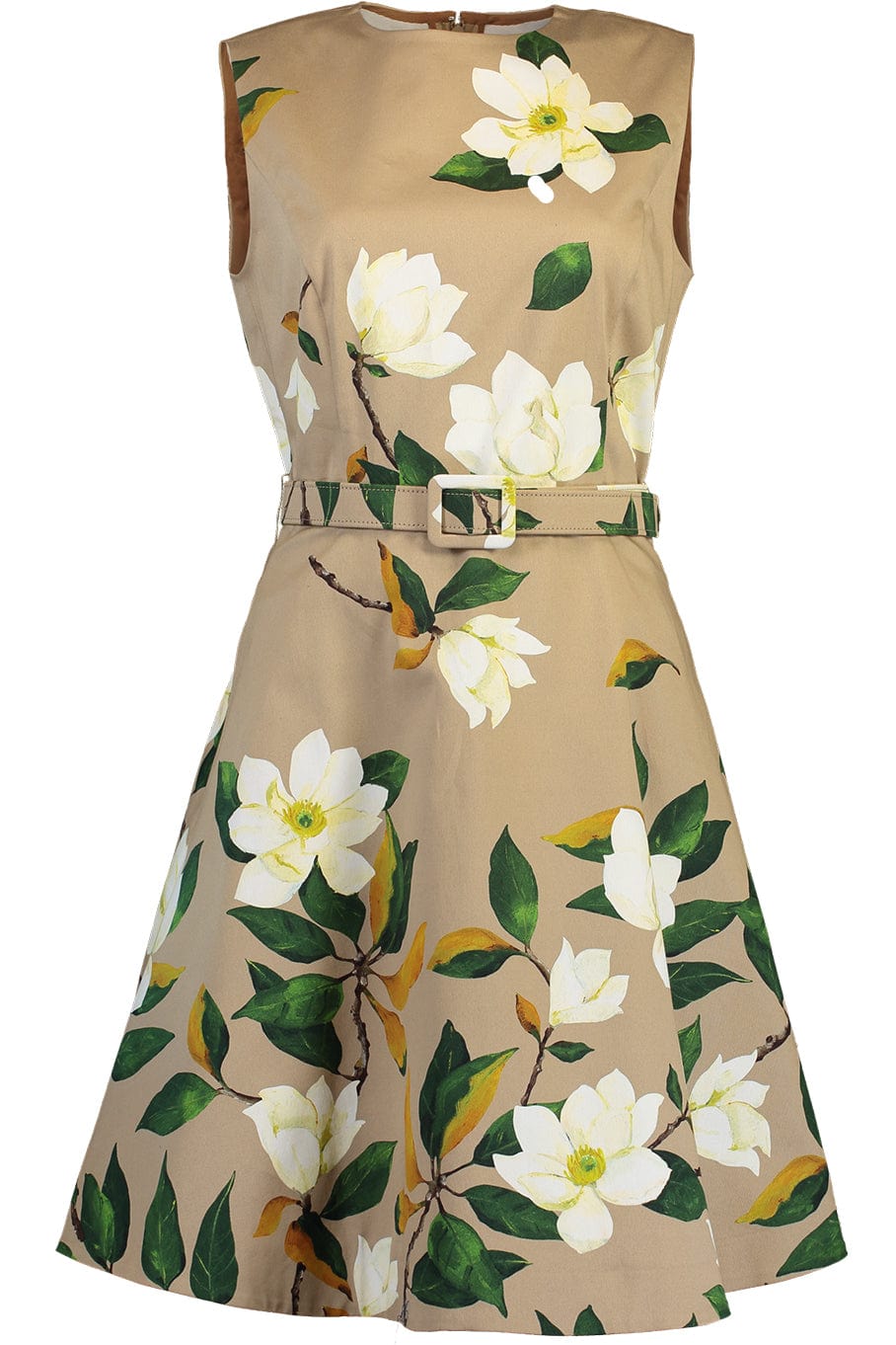Oscar De La Renta degrade magnolia dress with belt in khaki.