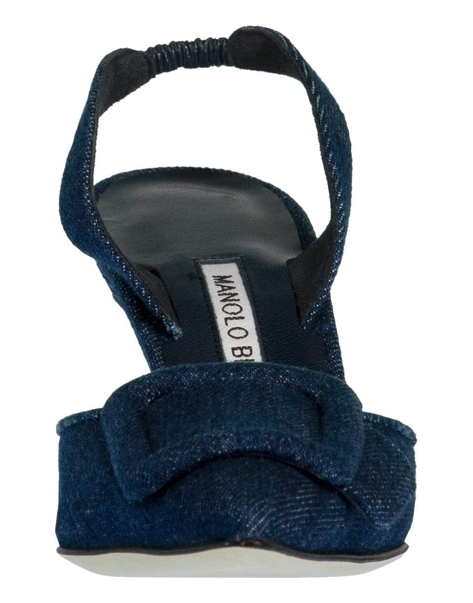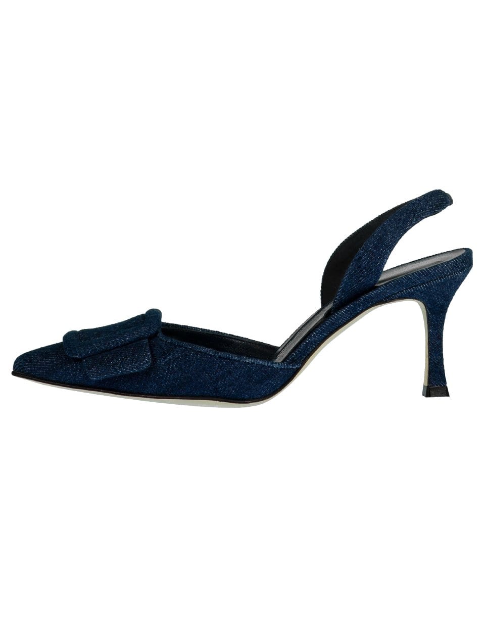 Manolo Blahnik's 'Maysli' slingbacks feature a pointed toe, 70mm stiletto heel, slingback style, and suede body finished with a self buckle.