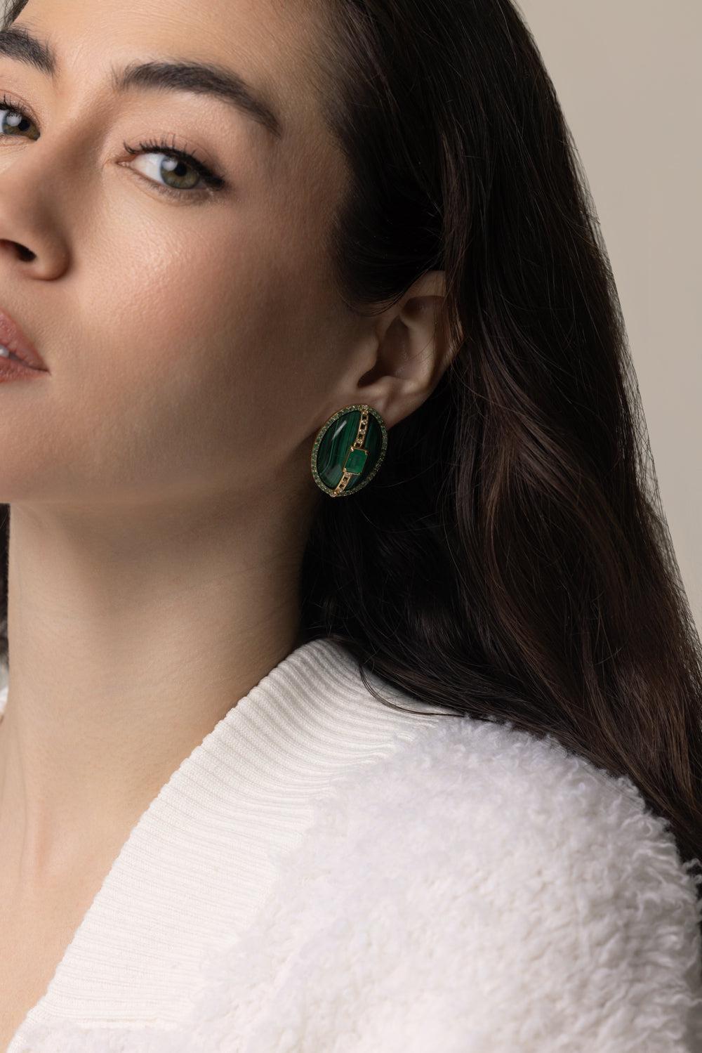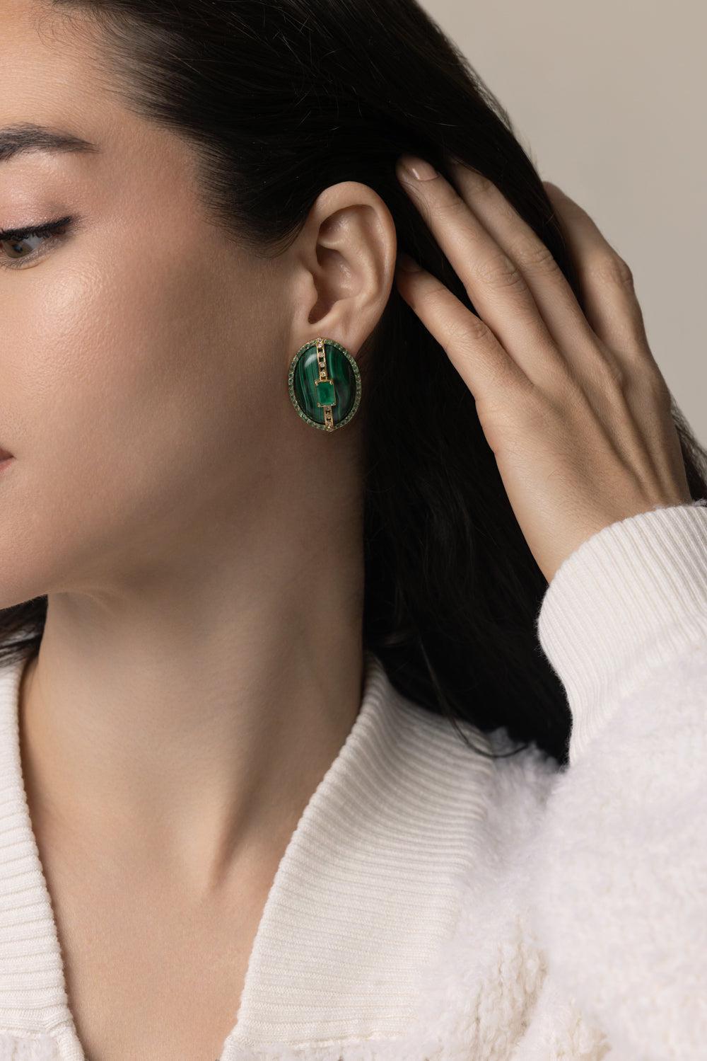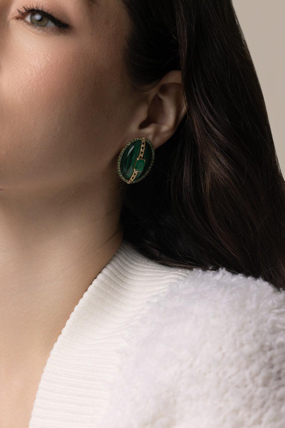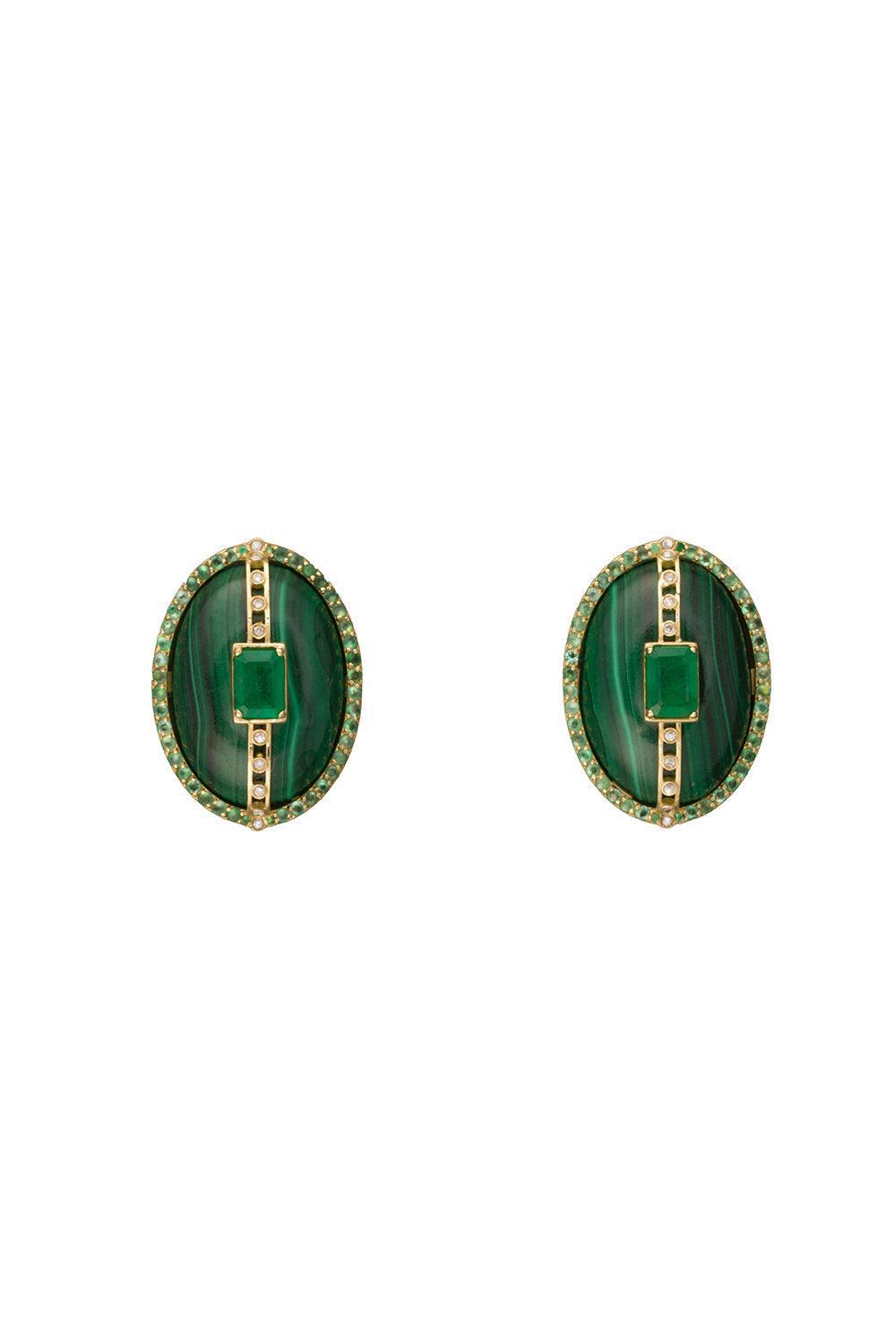 Denise Cassou malachite diamond earrings in yellow gold.