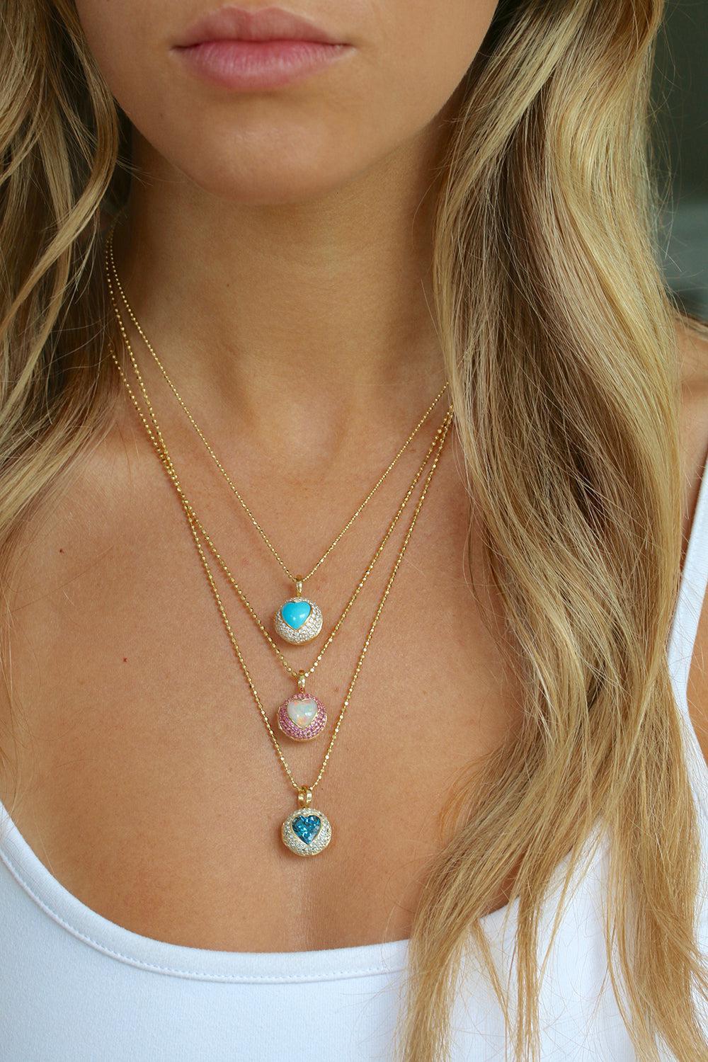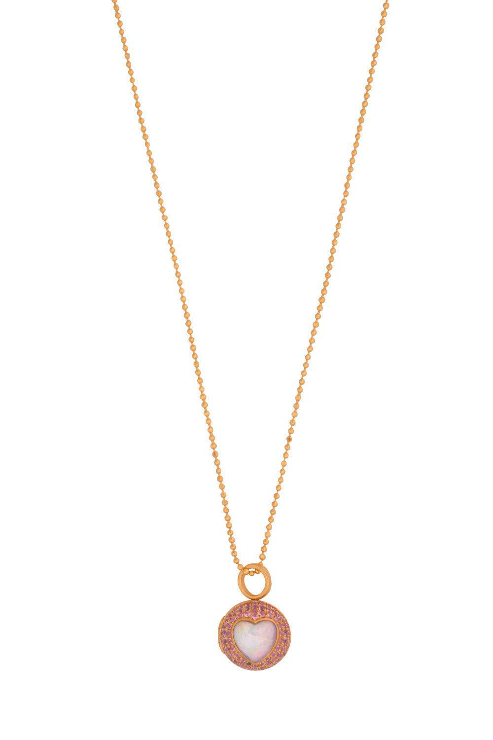 Devon Woodhill opal peek a boo heart locket necklace in yellow gold.