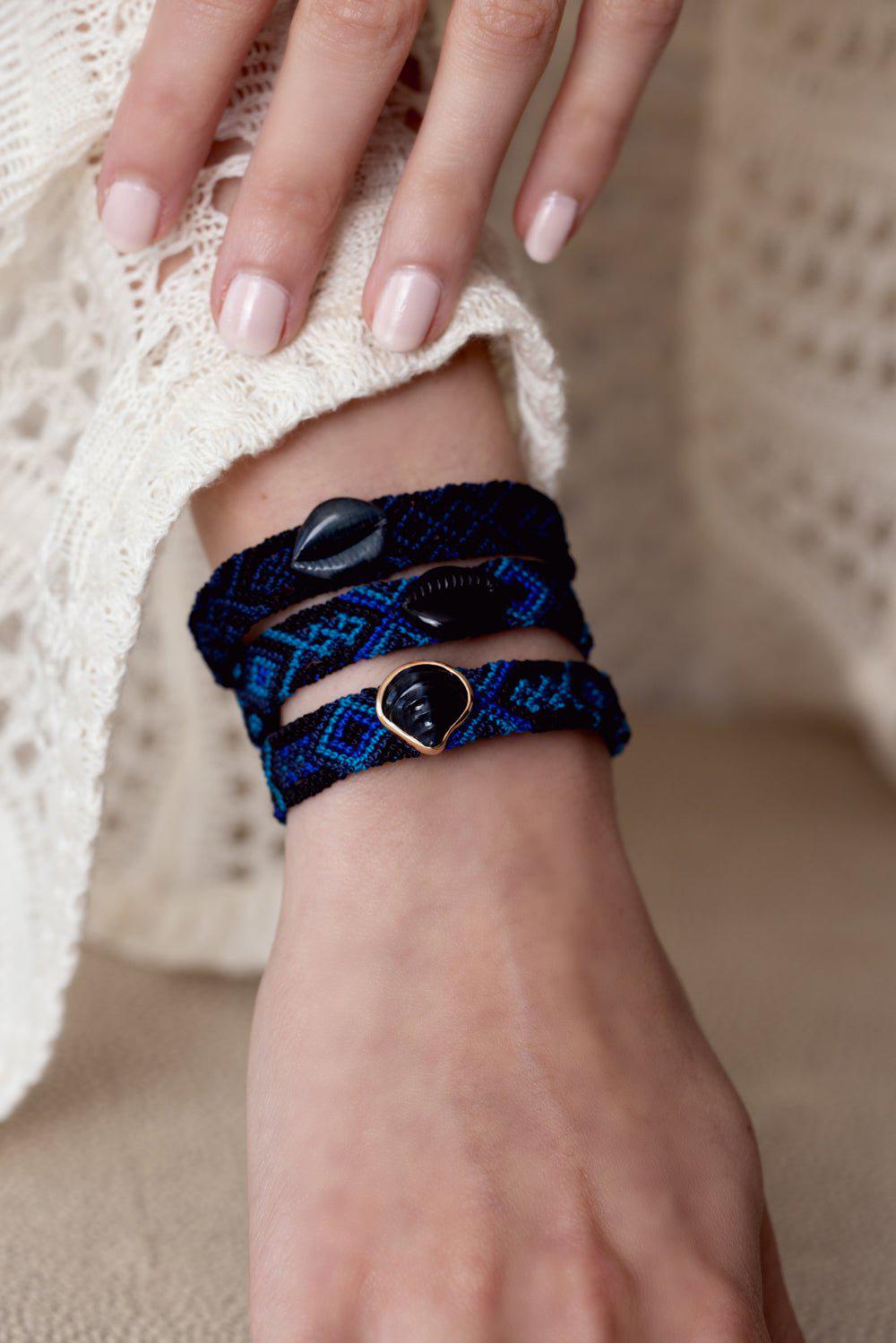 Sara Beltran carved cowry blue tigers eye mexican bracelet in blue.