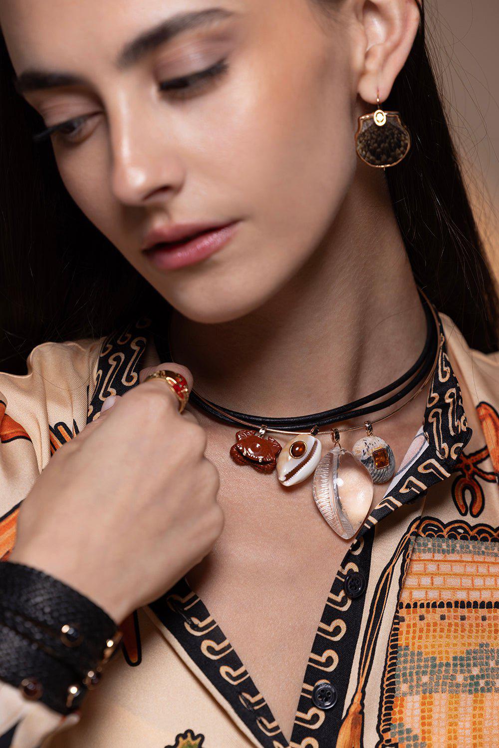 Cowry shell, citrine cabochon
