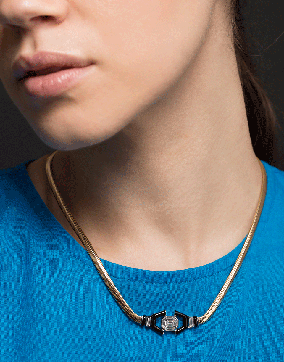 Diamond and black enamel necklace set in 18k yellow gold from the Nikos Koulis Feelings Collection.