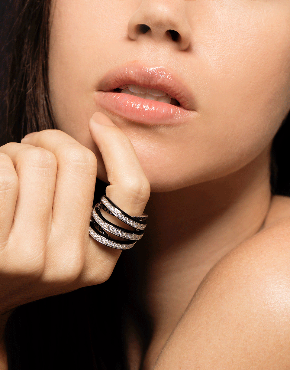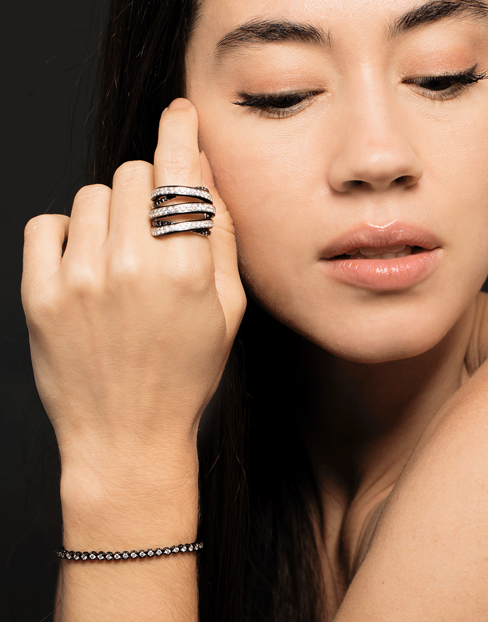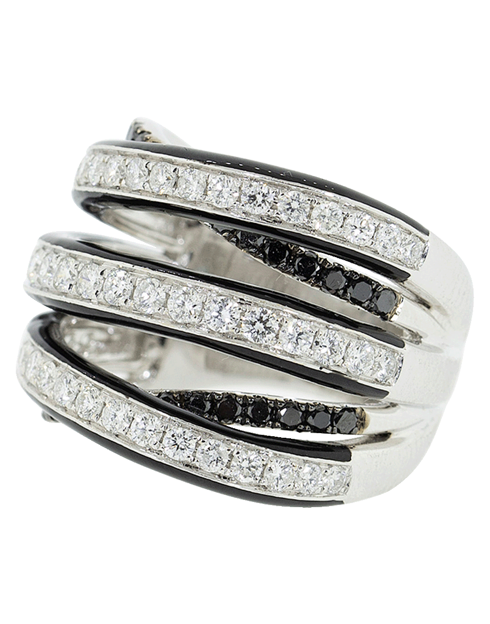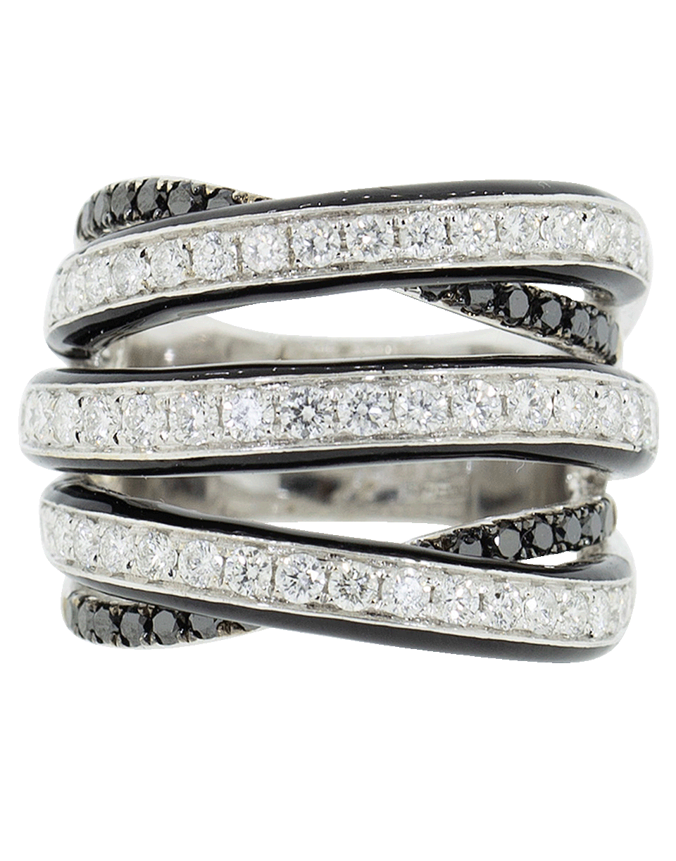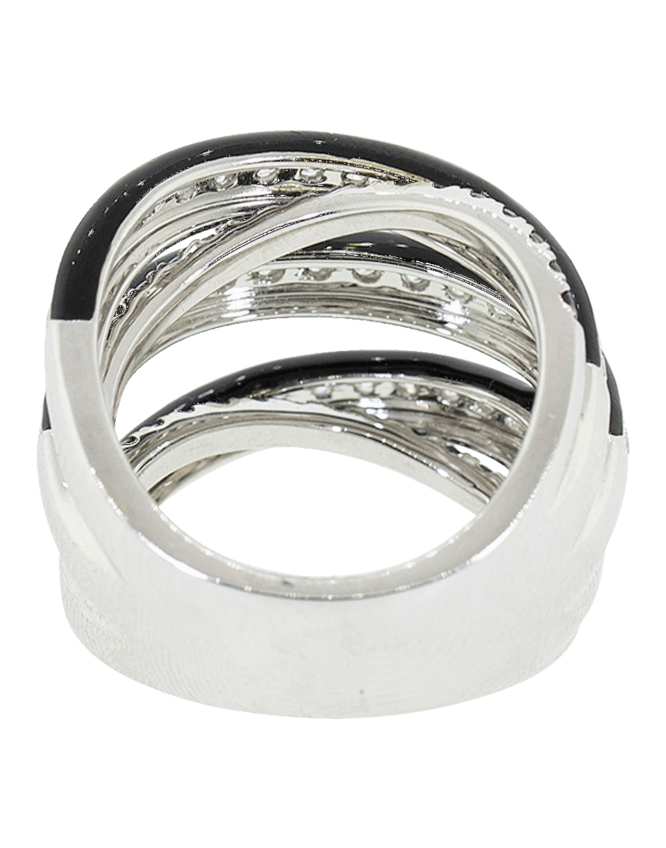 Black and white diamond entanglement ring by Graziela. Black enamel coating with a classic look.