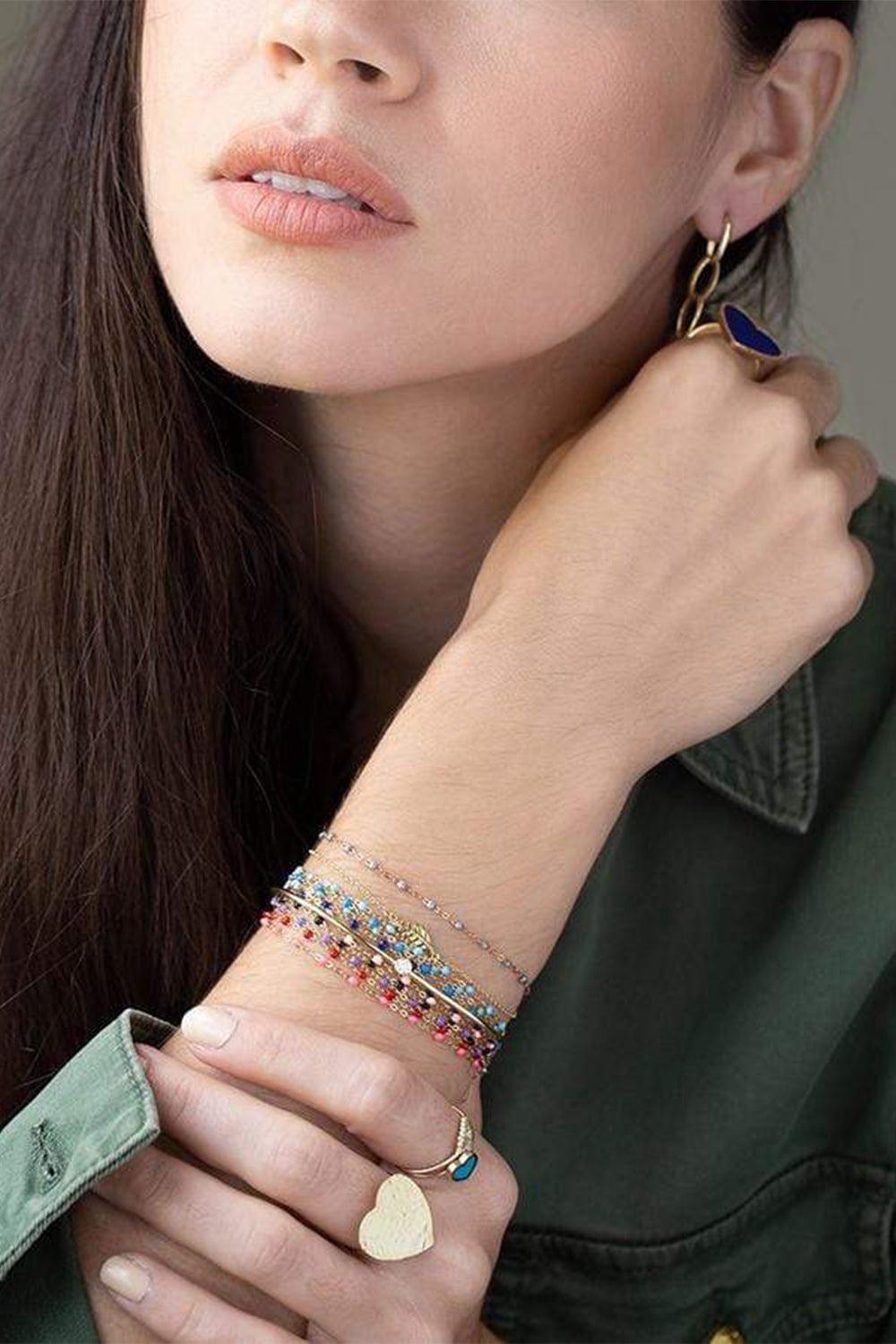 Jennifer Meyer diamond bezel cuff set in yellow gold.