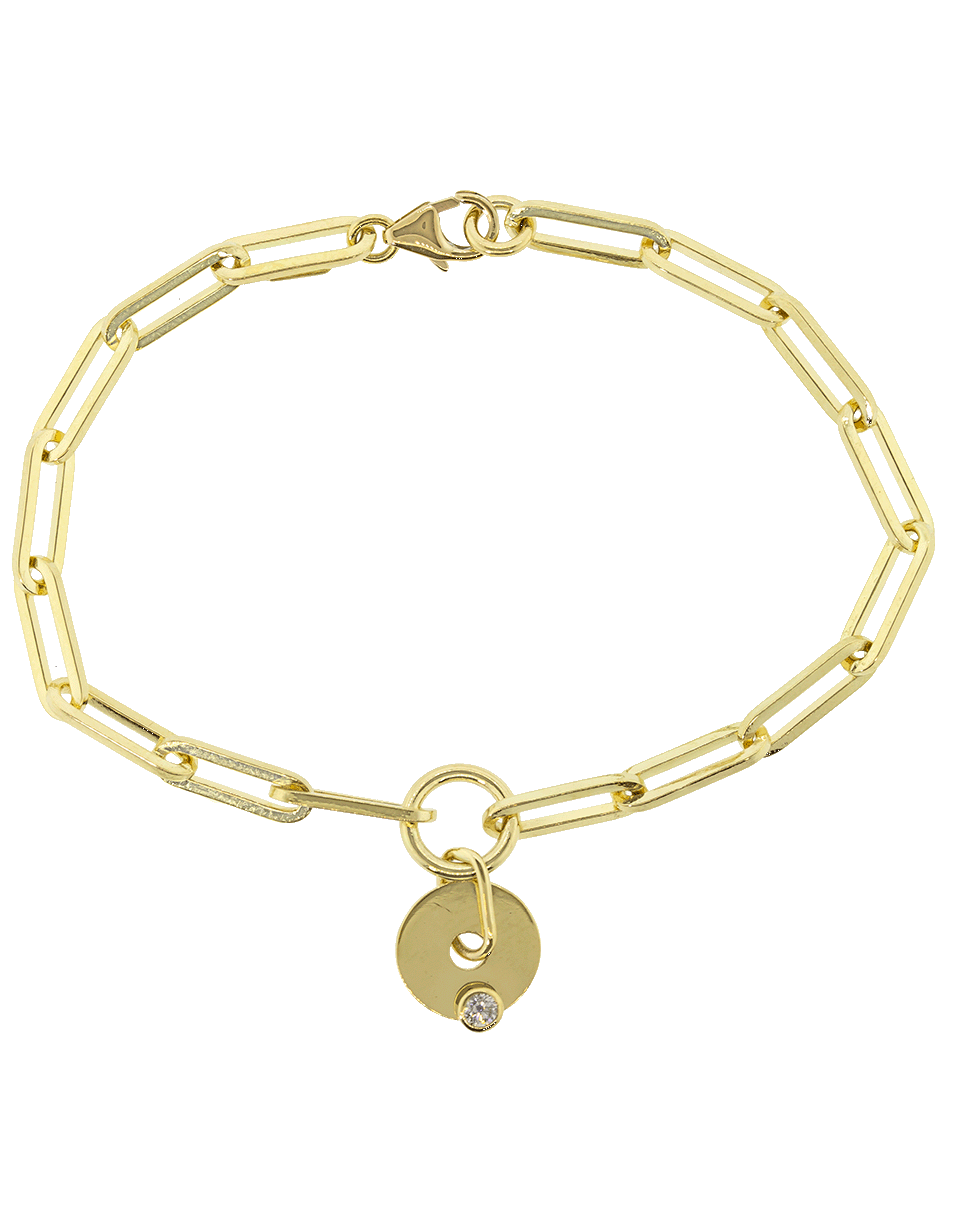 This clip bracelet from Foundrae is handcrafted from 18k yellow gold, it features a dainty 18k yellow gold disk with a diamond charm and a lobster clasp fastening.