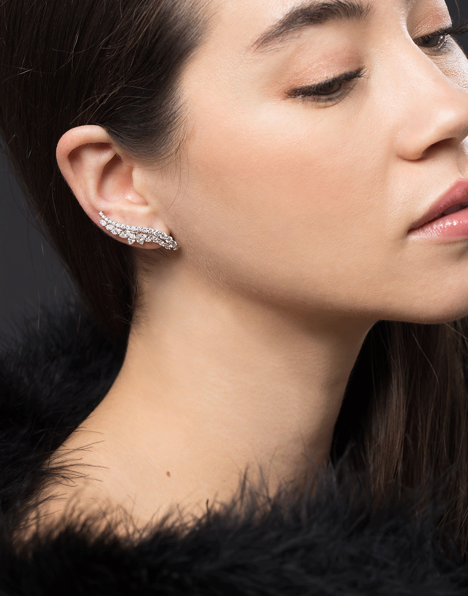 Diamond ear climber style earrings with round and marquis diamonds.