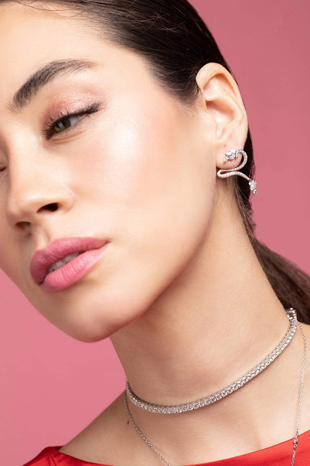 Yeprem shimmering white diamond earrings set in white gold. For pierced ears.