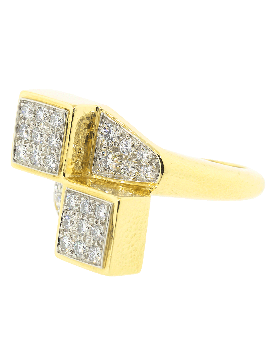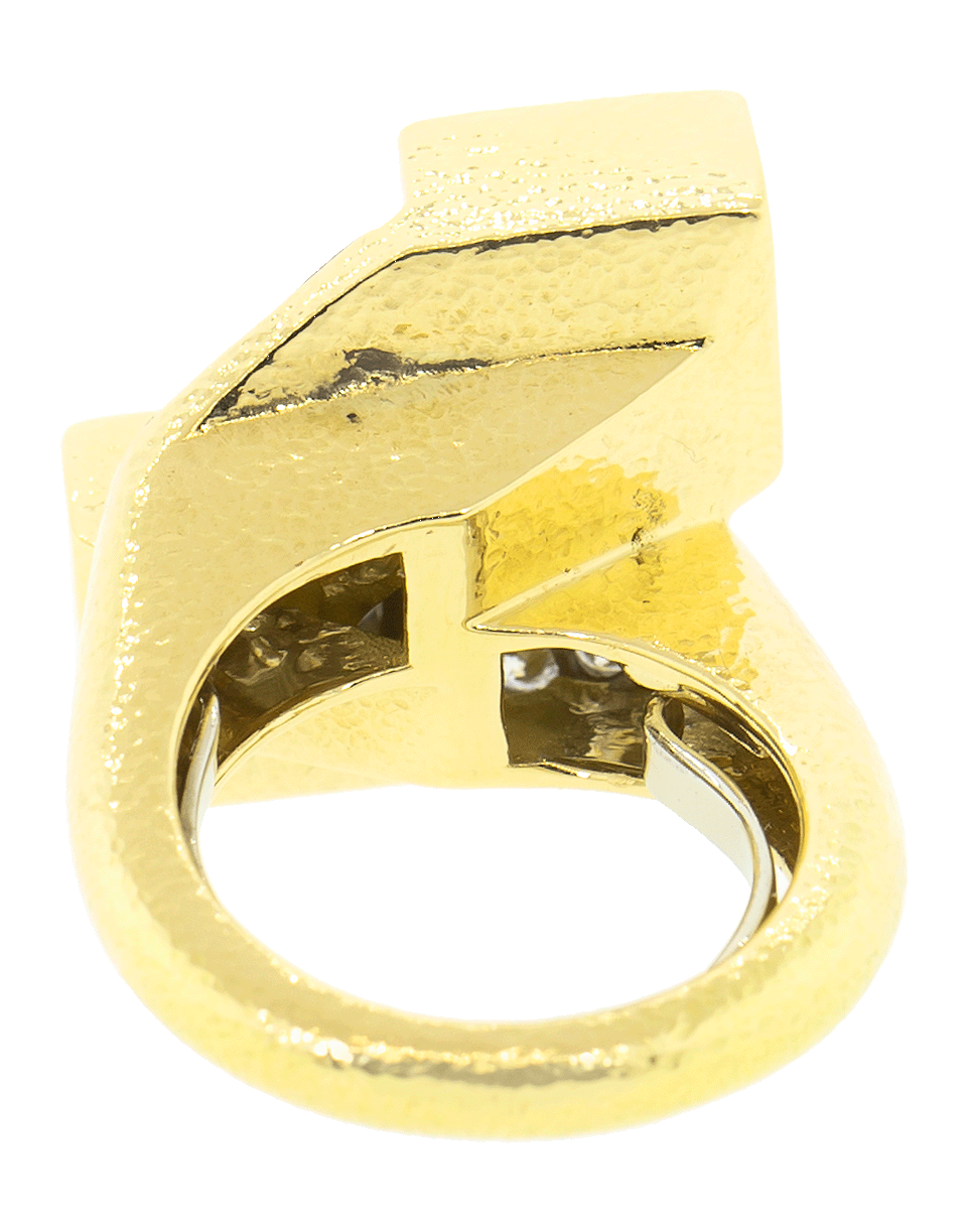 Hammered 18k yellow gold ring with brillant cut diamonds and platinum from David Webb.