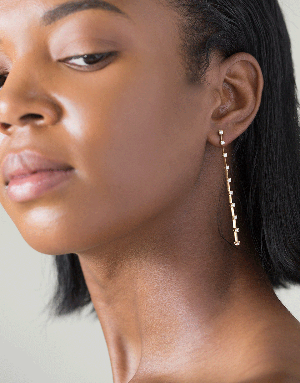 KATKIM's diamond illusion earrings are a blend of minimalism and pared back elegance sparked with an illusion of floating brilliant-cut diamonds.
