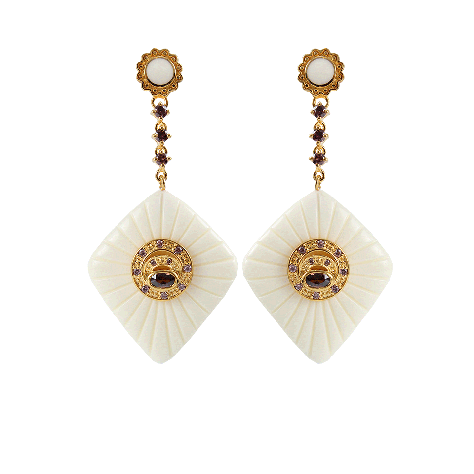 Give an icy touch to your evening glamour with Miriam Salat’s diamond peacock earrings. Pair with a ruched dress and sky high heels for a seductively sleek look.