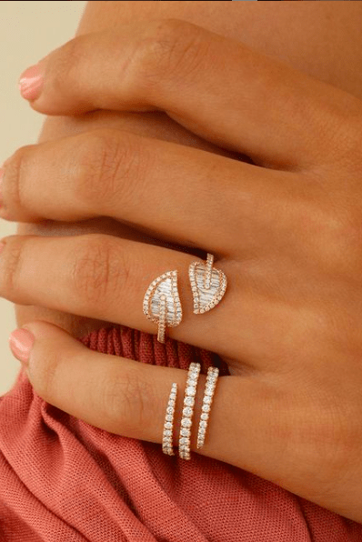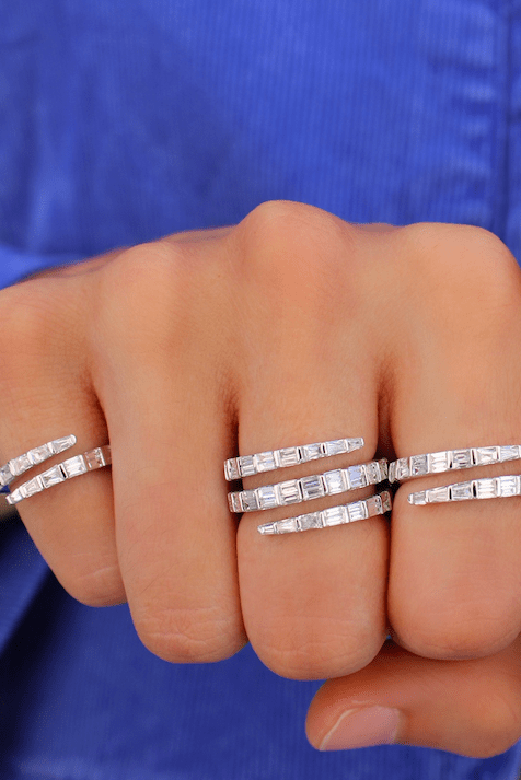 Anita Ko diamond pinky coil ring. Diamonds wrap completely around ring.